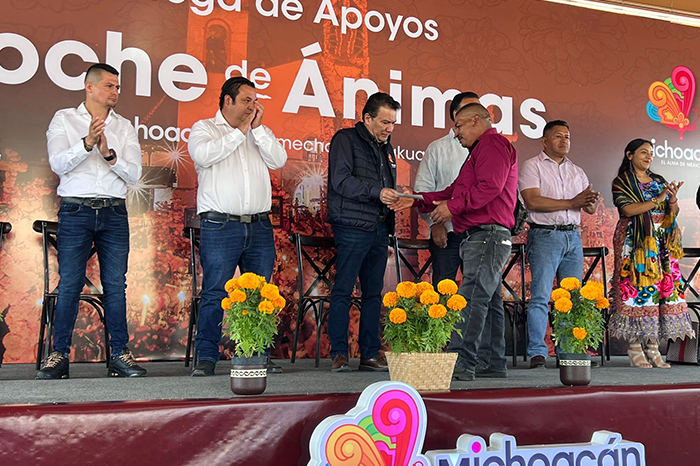 Redacción / La Voz de Michoacán Pátzcuaro, Michoacán. El Gobierno de Michoacán, a través de la Secretaría de Turismo (Sectur), entregó apoyos por más de 3 millones de pesos para impulsar la celebración de Noche de Muertos en 22 municipios, 37 comunidades y tres autogobiernos (Janitzio, Jarácuaro y Santa Cruz Tanaco). A nombre del gobernador Alfredo Ramírez Bedolla, y en compañía de presidentes municipales de la región Lacustre como Pátzcuaro, Quiroga, Erongarícuaro y Tzintzuntzan, el titular de la dependencia, Roberto Monroy García, hizo entrega de este recurso al reafirmar el compromiso de preservar e impulsar una de las principales tradiciones ancestrales del estado. Monroy García destacó que este es un Gobierno que escucha a la población, y es por ello que se entrega este dinero de manera directa a las comunidades, para que lo destinen en gastos de ornamentación y promoción de la Noche de Ánimas, que se reflejará en una importante derrama económica. Agregó que a través de la Secretaría de Comunicaciones y Obras Públicas (SCOP) se invertirán 900 mil pesos para la rehabilitación de panteones y muelles de Janitzio, Yunuén, Pacanda, Ucazanaztacua, Arocutín y Tzurumútaro; y que para reforzar la atención al turista y la venta de artesanías se capacita a prestadores de servicios. El secretario de Turismo recordó que, para la celebración de Noche de Muertos, Michoacán contará con más de 500 actividades y que para ello se ha realizado una promoción intensa en destinos como Querétaro, Jalisco, Nuevo León y Ciudad de México.