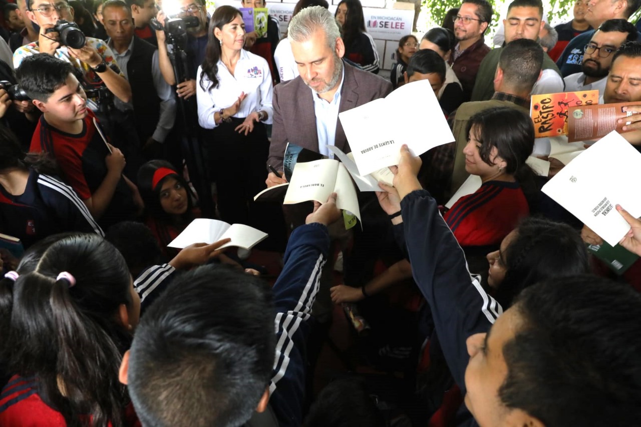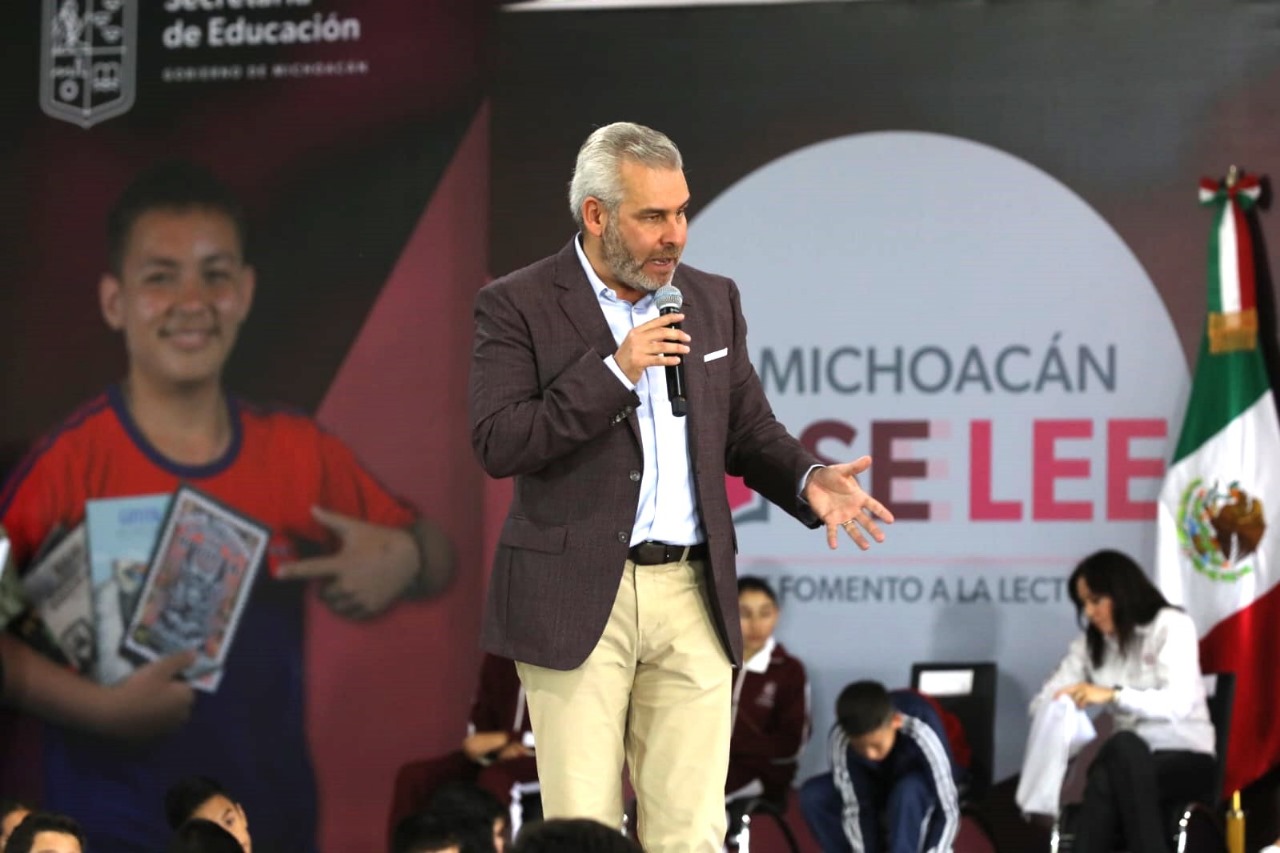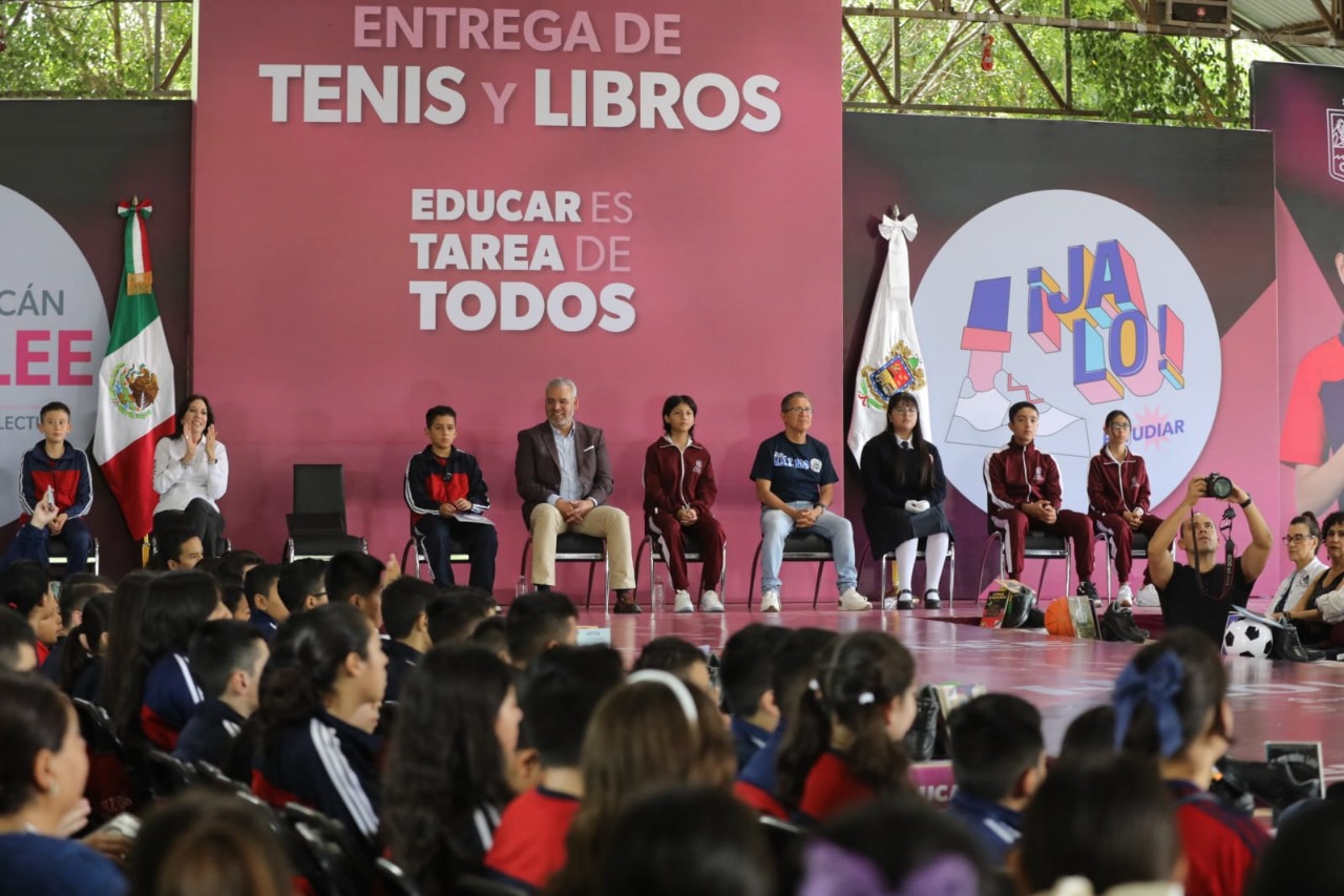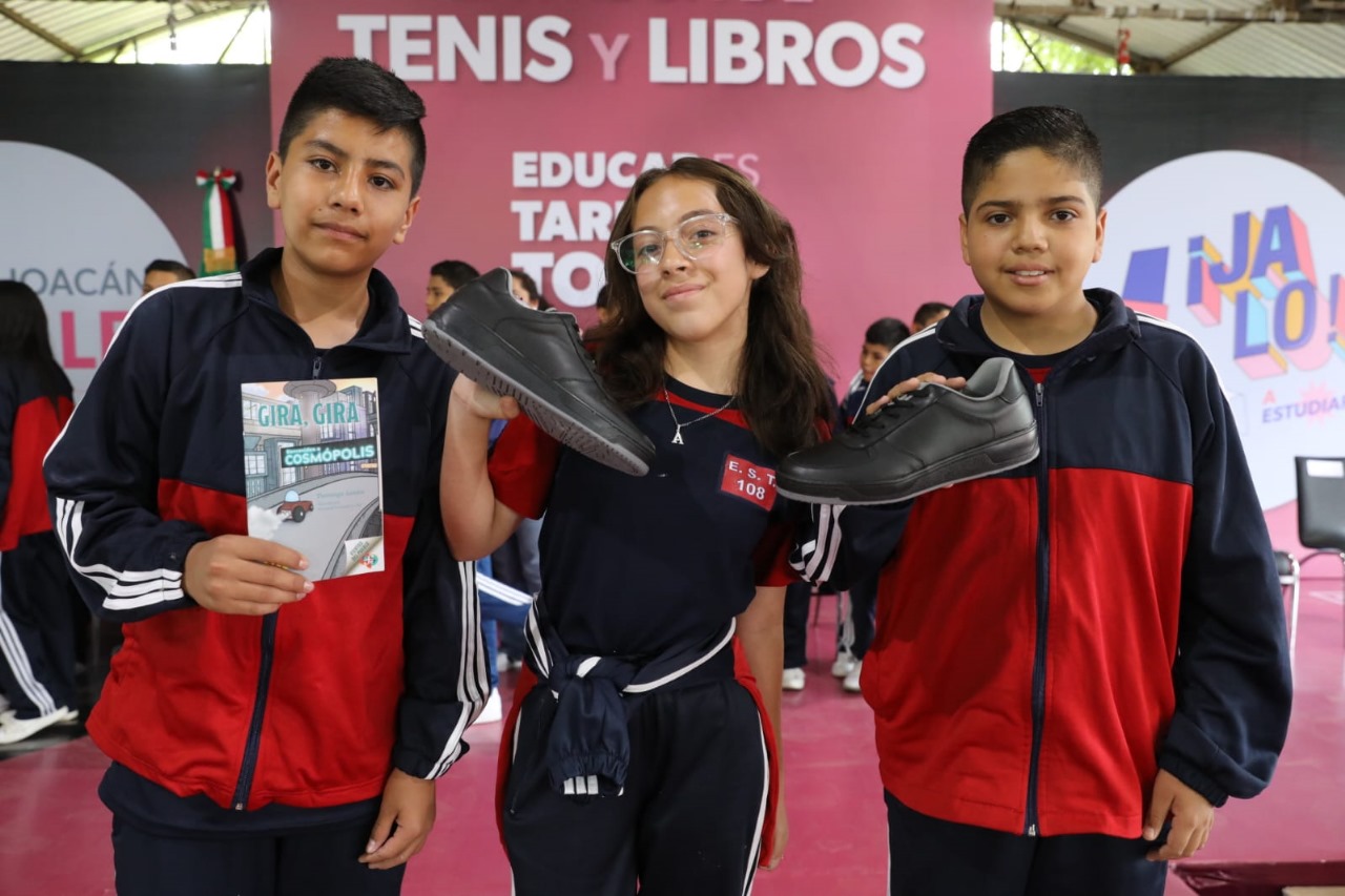 Redacción / La Voz de Michoacán Morelia, Michoacán. Por segundo año consecutivo, el gobernador Alfredo Ramírez Bedolla inició la entrega de tenis a más de 200 mil alumnas y alumnos de escuelas secundarias públicas de los 113 municipios de Michoacán. En la Escuela Secundaria Técnica 108 y acompañado de la secretaria de Educación, Gabriela Molina Aguilar, el mandatario comentó que a través del programa “Jalo a Estudiar” se apoya la economía familiar y se contribuye a la permanencia escolar disminuyendo la deserción de las y los alumnos. Además, informó que este año con el programa “En Michoacán se Lee” también se entregarán 200 mil libros de lectura para primarias y secundarias de zonas priorizadas en todas las regiones de Michoacán. Foto: EspecialFoto: EspecialFoto: EspecialFoto: EspecialFoto: EspecialFoto: EspecialFoto: EspecialFoto: Especial