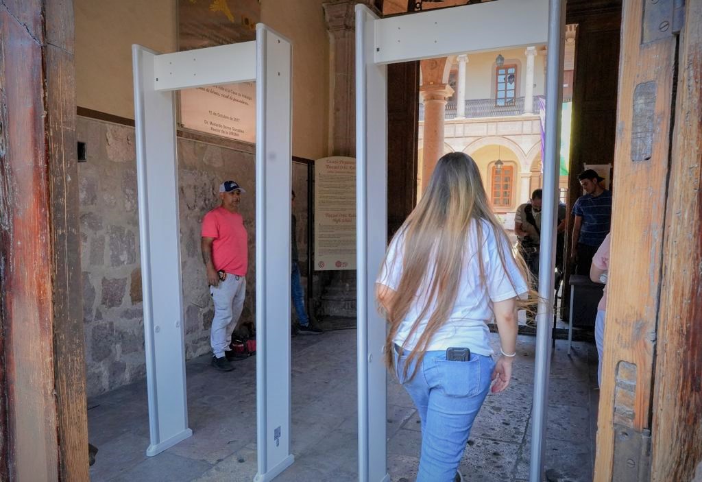 La instalación de los arcos detectores de metal inició este viernes en el Colegio de San Nicolás, continuaron las preparatorias Melchor Ocampo y Pascual Ortíz Rubio
