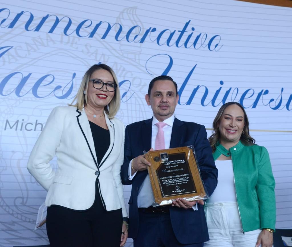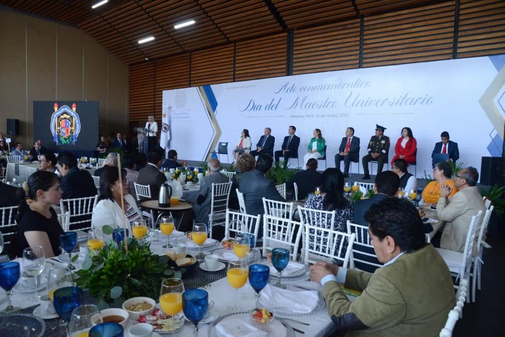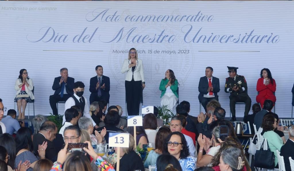 Morelia, Michoacán.- "La transformación de la educación significa modernizarla y adecuarla tanto a las exigencias de los conocimientos actuales como a las necesidades de cada sector, con este afán sé que debemos concluir la profunda transformación de nuestra alma mater y que continuamos bajo los principios de responsabilidad social", afirmó la rectora de la Universidad Michoacana de San Nicolás de Hidalgo (UMSNH), Yarabí Ávila González, al presidir la conmemoración del Día del Maestro y la Maestra, junto con la presidenta honoraria del Sistema DIF estatal, Grisel Tello Pimentel. Durante el acto, se hizo entrega de reconocimientos a profesoras y profesores de diversas facultades por sus 15, 20, 25, 30, 35 y 40 años de servicio en la Máxima Casa de Estudios. Frente a docentes, funcionarias y funcionarios, así como directoras y directores nicolaitas, la rectora indicó que, la educación es el medio para transformar no solamente la vida de quien tiene la oportunidad de estudiar, sino también de su entorno, de su familia y de las futuras generaciones. Reconoció la labor que realizan las y los profesores y recordó que sus padres también se dedicaron a la docencia, tras compartir que tiene un gran respeto por la labor de quienes se dedican a esta profesión. "No olvidamos que en materia profesional necesitamos formar esos hombres y esas mujeres con la ciencia y con la técnica que la actualidad exige. Estoy convencida que hay que hacer no solamente un llamado para que se fomenten los empleos de alto valor de conocimiento, ese llamado para los empresarios, y para todos lo que podamos colaborar, sino también que tenemos que reconocer que nosotros deberemos encontrar y entrar con fuerza en el terreno del emprendedurismo y la generación de empleos". Las y los maestros, señaló que, han sido constructores del Estado, de su pasado, de su presente y habrán de serlo de su porvenir, son una fuente de inspiración, de conocimiento y de valores, al tiempo que reconoció a las y los profesores de la Universidad, tras señalar que habrá que seguir picando piedra para luchar por mejores condiciones laborales que permitan el crecimiento de todas y de todos. "Para ello se requiere tenacidad, decisión, fortaleza y sobre todo trabajo en equipo para redireccionar las acciones administrativas y financieras, donde la deshonestidad y la mentira no caben. Las maestras y maestros merecen que se les hable con la verdad de lo que está en nuestras manos y lo que no tiene alcance para que juntos podamos buscar las alternativas que generen justicia". Ávila se congratuló por la presencia de la presidenta del DIF, Grisel Tello y reiteró su reconocimiento al gobernador, Alfredo Ramírez Bedolla, por el apoyo a la UMSNH, en este marco aseguró que la mejor vía para construir un estado distinto y mejor es garantizar una educación de calidad a las y los michoacanos, como clave para la igualdad de oportunidades, para acelerar el desarrollo regional y para impulsar el crecimiento en un entorno global. Afirmó que, la Universidad la construyen todas y todos y quien destruye no es bienvenido, al referir que una institución con mejor eficiencia y eficacia es lo que se requiere, con servicios educativos de calidad que coadyuven al desarrollo sostenible del estado, con un sólido reconocimiento internacional y una moderna gestión institucional, "que sepan que no nos temblará la mano para luchar y cambiar las cosas, pero también que trabajaremos con la sensibilidad y con las puertas abiertas para seguir uniendo a aquellos que deseen construir. Felicidades por lo que hacen día a día desde esta gran labor". La presidenta del DIF Michoacán, Grisel Tello Pimentel, se mostró contenta por asistir a la conmemoración y felicitó a quienes hoy son galardonados por su labor docente, comentó que las y los maestros son transformadores de mentes y ejercen una de las vocaciones de servicio más bellas. Como egresada de las aulas nicolaitas manifestó su orgullo y de parte del mandatario estatal, Alfredo Ramírez Bedolla, reconoció a las mujeres y hombres que hoy celebran su día, por el trabajo que desarrollan en bien de la comunidad estudiantil. "La Universidad tiene un gobernador que le respalda", afirmó. El secretario general de la UMSNH, Zoe Infante Jiménez, sostuvo que en el marco de esta celebración se reconoce a muchas y muchos nicolaitas que están comprometidos con el aprendizaje de sus alumnas y alumnos, se manifestó convencido que la meta como profesores y profesoras es darle a las y los estudiantes todas las herramientas que coadyuven a construir un mejor futuro. En su turno, el secretario general del Sindicato de Profesores de la Universidad Michoacana (SPUM), Jorge Luis Ávila Rojas, destacó la labor que el gremio desarrolla en el bien de la juventud, de igual forma apuntó que las y los trabajadores académicos han puesto su mejor esfuerzo para que la Casa de Hidalgo cumpla con su misión con la sociedad, al asegurar que no se ha escatimado esfuerzo para cumplir su función, incluso en el tiempo de pandemia. La maestra de la Facultad de Biología, Martina Medina Nava, en representación de las y los galardonados, afirmó que la docencia tiene un valor social y humano, se mostró contenta al recibir su reconocimiento por 35 años de servicio, y apuntó que uno de los retos es que las y los profesores se continúen actualizando para contar con mejores herramientas para su profesión. El profesor de la Facultad de Ingeniería Eléctrica, Juan Anzures Marín, a nombre de la planta docente, afirmó que ser maestro es una vocación de servicio por lo que subrayó la importante labor de educar, al tiempo que sostuvo que para la Universidad lo esencial es el bienestar de sus alumnos y alumnas. Durante el evento también estuvo presente el coronel de Infantería Diplomado de Estado Mayor, Elvim Rolando Ramos Santos, comandante del 12 Batallón de Infantería; la secretaria general del Sindicato d