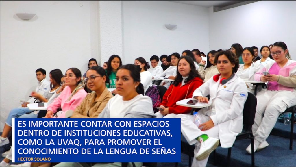 Redacción / La Voz de Michoacán Morelia, Michoacán. Héctor Solano, Intérprete y Traductor de Lengua de Señas Mexicana (LSM) y Lengua de Señas Americana (ASL), señaló que promover el conocimiento de la Lengua de Señas es fundamental para alcanzar la inclusión de la comunidad de sordos. “Los sordos, a diferencia de nosotros, no crecieron con la oportunidad de escuchar el idioma que se habla en México, que en este caso es el español, no es para ellos una lengua materna; en este caso para ellos sería la Lengua de Señas Mexicana, entonces, si nosotros queremos una inclusión verdadera, lo mejor sería que todos nos apliquemos y aprendamos Lengua de Señas Mexicana”, comentó Héctor Solano. El Intérprete y Traductor mencionó que es necesario eliminar la barrera lingüística entre las personas sordas y las personas oyentes, a fin de garantizar el desarrollo y crecimiento de la comunidad sorda en todos los ámbitos. Foto: Cortesía. “Para hacer un mundo realmente inclusivo lo mejor sería que nosotros como profesionistas nos abramos a hablar la Lengua de Señas Mexicana, que una barrera lingüística como tal ya no exista; que los sordos no necesiten intérpretes, que vayan a la escuela y tengan docentes que les puedan impartir en Lengua de Señas Mexicana la clase, que vayan al médico y puedan darle una consulta en Lengua de Señas Mexicana, que vayan a la fiscalía y existan abogados y personas que les atiendan en Lengua de Señas Mexicana, que en todos lados se les pueda atender sin necesidad de que esté un intérprete”, explicó el Héctor Solano. Finalmente, a propósito del curso de Lengua de Señas Mexicana que brindó en la UVAQ, el Instructor destacó la importancia de contar con espacios educativos abiertos a la promoción de este idioma y agradeció el interés de los alumnos por acercarse a este sistema de comunicación. “Es muy importante que instituciones educativas hagan espacios así, también agradecer a los alumnos, la verdad es que puedo percibir un interés sincero de parte de ellos”, concluyó. #UVAQ #LSM #Inclusión