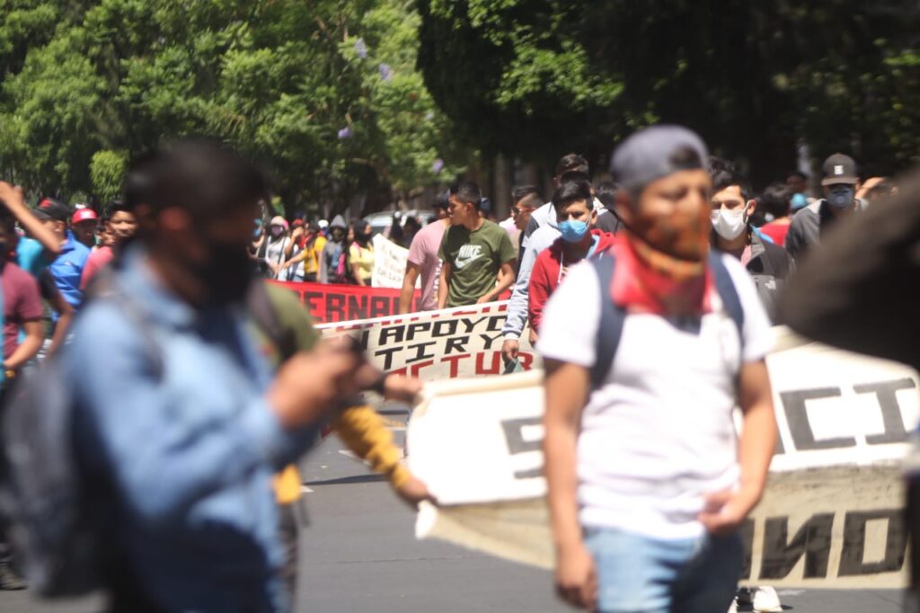 Juan Bustos / La Voz de Michaocán Morelia, Michaocán. La Organización de Normales Oficiales del Estado de Michoacán (ONOEM) se movilizaba de nueva cuenta este día como parte de la jornada de acciones para pedir de nueva cuenta la liberación de normalistas detenidos y la cancelación de la convocatoria de ingreso a las escuelas normales, además de pedir que no se eliminen 44 lugares para el entrada a estas instituciones. Los jóvenes partieron desde el Monumento a Lázaro Cárdenas hacia el centro histórico para realizar un mitin Frente a Palacio de Gobierno, es importante señalar que desde el lunes pasado nos estudiantes se han movilizado para estas exigencias. Tras tres días de movilizaciones, Jesús Ochoa García, vocero normalista detalló que espera que los próximos días pueden quedar liberados los jóvenes detenidos la semana pasada en Tiripetío por el bloqueo de vías férreas, esto tras el pago de una fianza y el continuar con su proceso en libertad. Foto: Víctor Ramírez. “Nosotros continuaremos con las movilizaciones y tanto no haya una respuesta por parte de la autoridad, para la liberación de los compañeros y sobre todo lo que tiene que ver con la cancelación de la convocatoria de ingreso que creemos se realizó de manera unilateral por parte de las autoridades”. Cabe recordar qué la semana pasada 7 jóvenes fueron detenidos por el bloqueo de vías férreas en las inmediaciones de la Escuela Normal Rural Vasco de Quiroga y también otras dos personas fueron detenidas el pasado 4 de mayo cuando Se bloqueó las vías férreas en la comunidad indígena de Caltzontzin en Uruapan. Foto: Víctor Ramírez. Es importante señalar que las fichas para el ingreso a las escuelas normales de acuerdo a la convocatoria de ingreso a partir del pasado primero de junio se están emitiendo, sin embargo hubo la determinación de las representaciones estudiantiles de cada normal ni pedir este proceso.