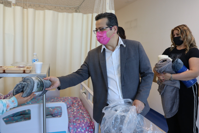 La entrega fue encabezada por el Mtro. Jesús Vivanco Rodríguez, Rector de la UNLA; la Mtra. Jocelyn Calderón Guzmán, Vicerrectora de Desarrollo y Promoción; así como el equipo del área de Vinculación y Formación Social UNLA, quienes acudieron personalmente a las instalaciones del hospital para hacer la entrega y compartir un mensaje de acompañamiento en esta temporada invernal.