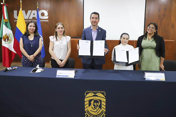 Redacción / La Voz de Michoacán Morelia, Michoacán. Además de su interés en la formación integral de la persona, la Universidad Católica de Manizales, de Colombia, y la Universidad Vasco de Quiroga, de México, tienen muchas coincidencias en busca del bien común, señalaron representantes de ambas instituciones a propósito de la firma del convenio de colaboración institucional. Del Convenio firmado destacan entre sus objetivos: Promoción de la cultura católica, de la investigación, la docencia y las actividades culturales y deportivas.El intercambio de estudiantes, para que realicen misiones católicas internacionales, con el objeto de que los estudiantes ofrezcan un servicio a las comunidades de México y Colombia, para la construcción de una vida más humana y más digna, en un ambiente cristiano, que les permita fortalecer su espiritualidad y sus competencias profesionales.Los programas de movilidad de investigadores, personal docente y estudiantes.El trabajo para llevar a cabo programas de doble titulación México - Colombia. En representación de la Universidad Católica de Manizales, asistió la maestra Elizabeth Caicedo, religiosa de las Hermanas de la Caridad Dominicas y rectora de la Universidad, así como María de los Ángeles Casafus, encargada de Pastoral en la Organización de Universidades Católicas de América Latina y el Caribe (ODUCAL). Palabras de la rectora de Manizales aseguró que este convenio permite “poder decirle al mundo que las universidades y a los dos países que contamos con hombres responsables, con un perfil cristiano y un perfil social, que trabajan por un mundo mejor en un momento difícil, y decirles a los estudiantes que sean felices, que amen, que vivan". El Ing. José Antonio Herrera, rector de la UVAQ, recibió a las visitantes y antes de firmar el convenio, les ofreció un recorrido por el Campus Santa María, además de transmitir en vivo una entrevista desde la cabina de UVE Radio, donde manifestaron su interés por unir esfuerzos en busca de una educación integral para estudiantes de México y Colombia. #UniversidadCatólica #ODUCAL #UniversidadInternacional #TeamUVAQ