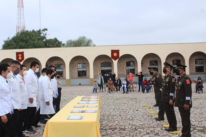 Redacción / La Voz de Michoacán Morelia, Michoacán. Este jueves se llevó a cabo la ceremonia para reconocer a los profesionales de la salud contratados que laboraron en apoyo con el Ejército Mexicano durante la aplicación del Plan DN-III-E en las Unidades Operativas de Hospitalización, Terapia Intensiva y Hospitales INSABI, por la pandemia de COVID-19. El evento fue presidido por el C. General de Brigada Diplomado de Estado Mayor, Sergio Armando Barrera Salcedo, comandante de la 21/a. Zona Militar, quien entregó a 29 profesionales de la salud un reconocimiento firmado por el secretario de la Defensa Nacional, Luis Cresencio Sandoval González, por su esfuerzo e importante participación durante la pandemia, al laborar en la primera línea de atención de pacientes contagiados por el virus. Foto: Cortesía. Asimismo, el comandante expresó su agradecimiento y reconocimiento al personal médico, por su destacado desempeño, profesionalismo y entrega, ya que fueron uno de los pilares fundamentales para hacerle frente a dicha enfermedad. Con estas acciones, el Ejército Mexicano señaló que reconoce y estimula a las mujeres y hombres que con compromiso y valor contribuyeron para salvaguardar al pueblo de México.