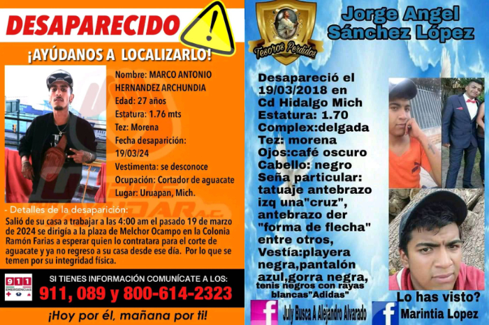 Del mismo modo, Martha González no pierde la esperanza de encontrar a su hijastro Marco Antonio Hernández, quien no ha sido visto desde el pasado 19 de marzo, cuando se dirigía a la plaza de Melchor Ocampo del municipio de Uruapan para reunirse con una persona que le daría empleo de cortador de aguacate. "La verdad tanto para su madre como para mí sería magnífico poder estar junto a él en este día tan especial”, sostuvo.