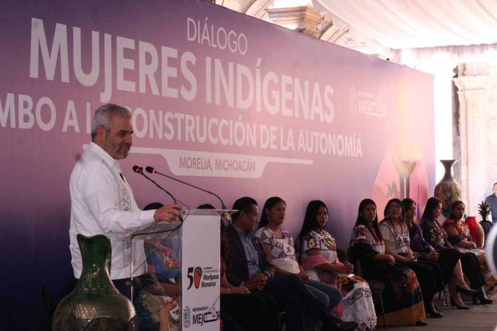 Redacción / La Voz de Michoacán Morelia, Michoacán. “No habrá una transformación completa en Michoacán hasta que las mujeres, en especial las mujeres indígenas, vean garantizados todos sus derechos y vivan sin violencia”. Con estas palabras, el gobernador Alfredo Ramírez Bedolla reafirmó su compromiso inquebrantable con la lucha de las mujeres michoacanas durante su participación en el foro Diálogo con Mujeres Indígenas rumbo a la Construcción de la Autonomía. Destacó la guía que representan en su gobierno las mujeres para la toma de decisiones, la creación de políticas públicas o para proponer reformas que garanticen sus derechos, como en el tema del aborto. Por ello, dijo, se nombró a Jennifer Martínez Murillo como rectora de la Universidad Intercultural Indígena de Michoacán (UIIM), para afianzar la lucha de las mujeres, ya que son ellas quienes conducen el tema educativo en el estado, con Gabriela Molina a cargo de la Secretaría de Educación o Mariana Sosa como directora general del Instituto de Educación Media Superior y Superior del Estado de Michoacán (Iemsysem). Foto: Víctor Ramírez, La Voz de Michoacán. Reconoció que en los pueblos indígenas la lucha de las mujeres es más compleja y puso como ejemplo la labor que realizan las kuarichas mujeres, quienes tuvieron que vencer tabúes y prejuicios para encargarse de las tareas operativas seguridad en sus comunidades. Durante el diálogo con mujeres indígenas rumbo a la construcción de la autonomía, donde las participantes pidieron que se garanticen sus derechos y el impulso de actividades que contribuyan a su desarrollo, el gobernador escuchó las ideas y conoció la visión feminista que existe desde los pueblos originarios. Foto: Víctor Ramírez, La Voz de Michoacán. Participaron en este foro el secretario de Gobierno, Carlos Torres Piña; las secretarias de Igualdad Sustantiva y Desarrollo de las Mujeres Michoacanas, Alejandra Anguiano González y de Educación, Gabriela Molina; la coordinadora de Comunicación, Záyin Dáleth Villavicencio Sánchez; la directora del DIF Michoacán, Ana Sofía Bautista Aguíñiga; y la senadora de la República, Celeste Ascencio. También, la rectora de la Universidad Intercultural Indígena de Michoacán (UIIM), Jennifer Martínez Murillo; las concejeras presidentas de las comunidades indígenas de Huáncito, San Isidro y Angahuan, Jessica Guadalupe Sebastián, Rosalía Bernabé Lorenzo y María Teresa Perucho Bravo, respectivamente.