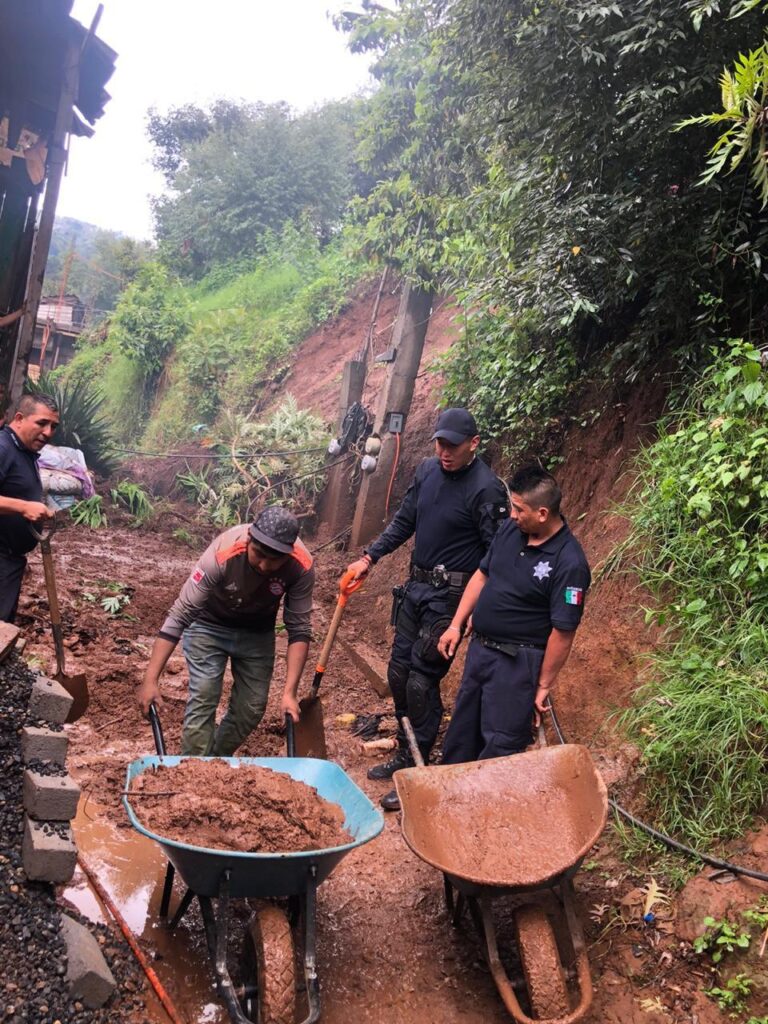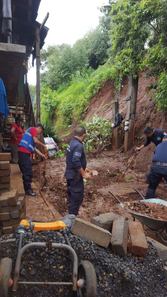 Tingambato, Michpoacán. Elementos de protección civil y de seguridad publica del municipio realizaron trabajos de apoyo por el deslave y la caída de un árbol que ocasionaron las fuertes lluvias el pasado miércoles. Gracias a la coordinación de los elementos de dichas corporaciones y el apoyo de los habitantes, lograron sumar esfuerzos por el desastre natural, según las autoridades 5 domicilios se encuentran en riesgo, ya que se ubican en una zona irregular. La tarde del miércoles, la solidaridad se vio reflejada para el apoyo a las familias afectadas, además intervinieron elementos de protección civil de Pátzcuaro. Julio Cesar Méndez Adame, coordinador de protección civil de Tingambato, menciono que durante la temporada de lluvias estarán generando rondines y apoyo ante otra contingencia que se llegara a suscitar.