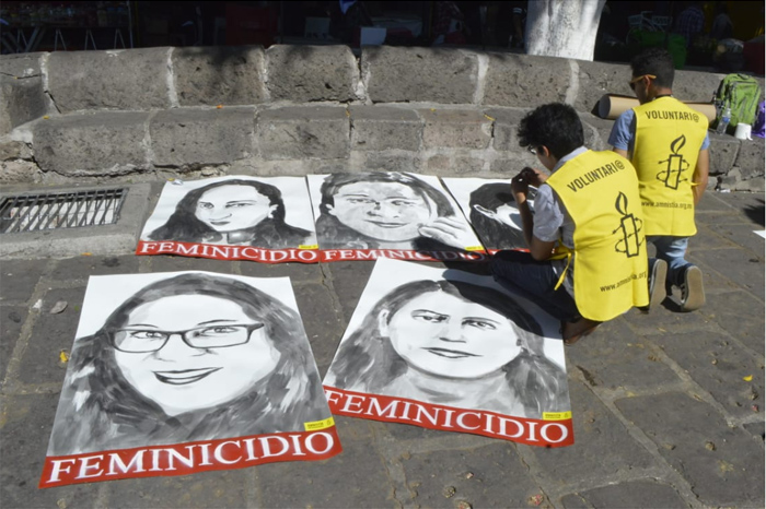 Redacción/ La Voz de Michoacán Morelia, Michoacán. Amnistía Internacional está en la capital michoacana. esta tarde realizan una jornada de denuncia contra el feminicidio. El Centro Histórico es el escenario donde los integrantes de esta organización pro derechos humanos llevan a cabo la campaña con la que se busca visibilizar la violencia contra las mujeres en una de sus manifestaciones: el feminicidio. Desde la fuente de Las Tarascas y por todo el Acueducto de Morelia, se colocan ilustraciones de mujeres que fueron asesinadas. Video: Samuel Herrera Jr. Suman 150 mujeres asesinadas en la entidad en 2019, de acuerdo a información de la Fiscalía General del Estado de Michoacán. Mientras que como feminicidios hay 10 casos, de los cuales ocho están judicializados, para el caso de homicidios en agravio de la mujer son 143 carpetas con 150 víctimas. El fiscal Adrián López Solis expuso que el 30 por ciento de las denuncias están aclaradas y judicializadas, además expuso que los casos “son demoledores” y no dejan “un grato sabor de boca”. Foto: Samuel Herrera Jr. En el centro de Morelia los voluntarios de la AI se hicieron presentes. Morelia podrá cerrar el 2019 como una de las ciudades que más feminicidios registró en todo el país, pues a poco más de dos meses de que finalice este año, datos de fuentes oficiales posicionan a la capital michoacana en el puesto número 28 nacional con mayor número de casos, siendo además la única ciudad michoacana que forma parte de dicho listado. A esto se le suman los casos de violaciones en Morelia, que contabiliza ya 85 en lo que va del año, más varias decenas más de denuncias de diversos tipos de agresiones y delitos sexuales. Con información de Héctor Jiménez.