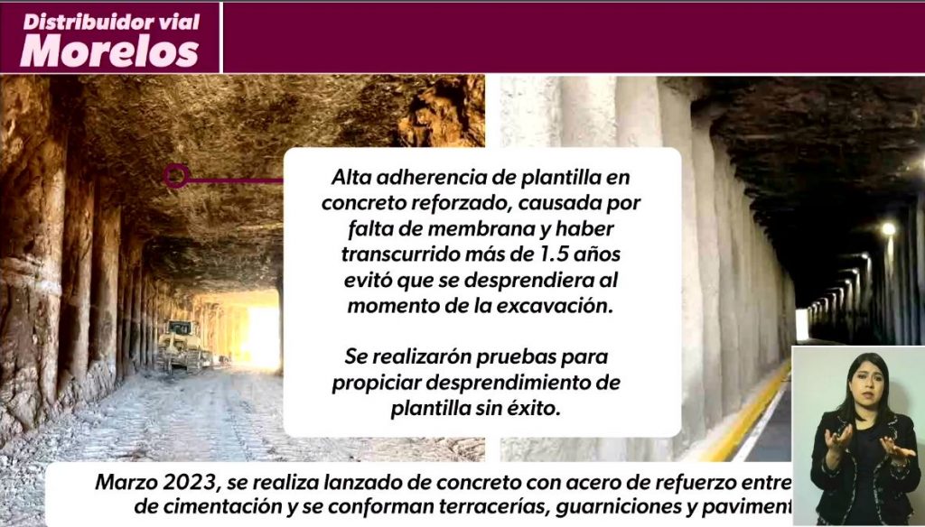 Omar Cuiriz / La Voz de Michoacán Morelia, Michoacán. El secretario de Comunicaciones y Obras Públicas, Rogelio Zarazúa explicó la configuración del distribuidor vial Paso Morelos, ubicado en salida a Salamanca, la cual tiene 3 construcciones de túneles, uno de 150 metros, otro de 8 y uno más de 12 metros. Explicó que dos túneles son para vueltas izquierdas, uno que viene de El Pípila y gira hacia el Estadio Morelos y otro que viene de salida a Salamanca hacia el Mercado de Abasto. Sobre el proceso constructivo para estos túneles, dijo que se tiene una losa de concreto reforzado, luego una capa de membrana y finalmente una plantilla de 4 centímetros; explicó que la plantilla suele caerse en el proceso de la obra, pero que en este caso, en 2021, no se puso la membrana, por lo que la plantilla estaba fuertemente pegada a la losa. “Cuando ya nos toca a nosotros tomar la obra, a esta administración, en marzo de 2023, empezamos a hacer la excavación y la plantilla no se caía por la alta adherencia en concreto reforzado”. Dijo que sí se realizaron pruebas para propiciar el desprendimiento sin éxito, fue entonces que ya una vez inaugurado, con el paso contante de los autos se desprendió una sección. “De ninguna manera es un tema estructural , la losa se encuentra perfectamente, es concreto simple y lo que estamos haciendo es una labor muy minuciosa para revisar esta plantilla y evitar daños”. PROCESO DE ATENCIÓN Indicó que habrá cierres parciales por 72 horas para realizar limpieza profunda de restos y que una vez se termine se reabrirán a circulación los túneles. Agregó que la Facultad de Ingeniería Civil de la Universidad Michoacana de San Nicolás de Hidalgo, realizará un estudio para dar confianza a la ciudadanía.
