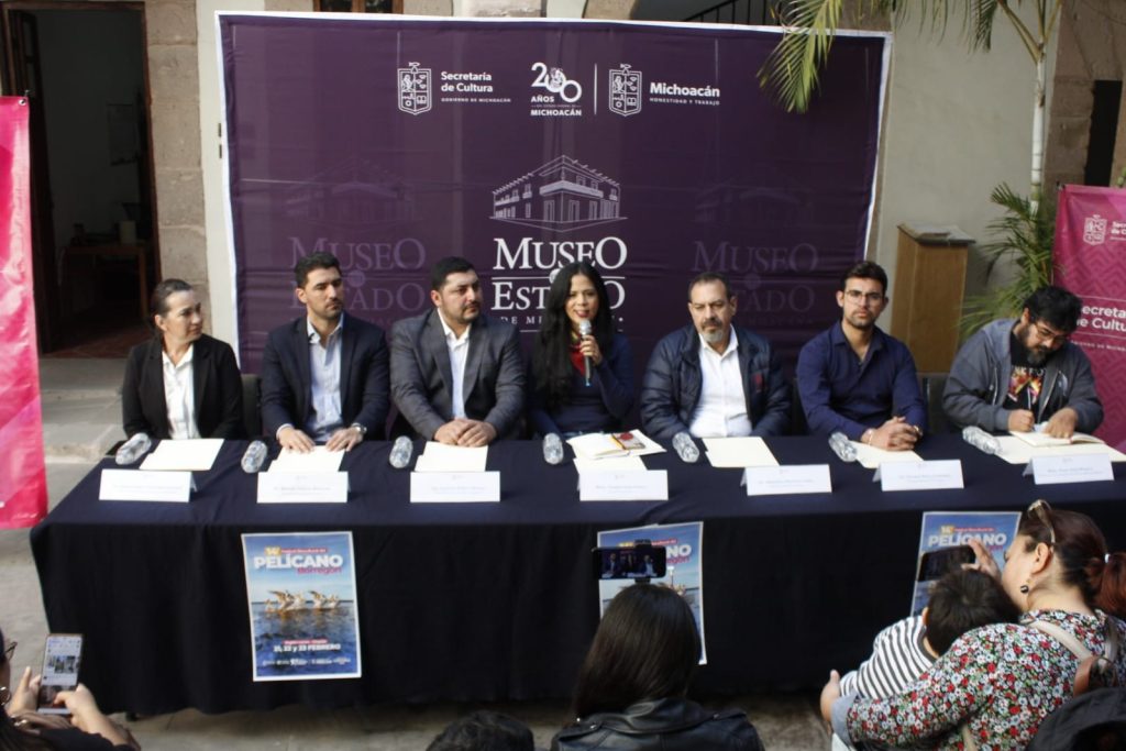 Morelia, Michoacán.- Para generar conciencia sobre la importancia de conservar el ecosistema del pelícano borregón, Michoacán fortalece lazos desde la cultura, medio ambiente y la academia, para la realización del XIV Festival Biocultural, que se realizará del 21 al 23 de febrero, en beneficio de 20 municipios y comunidades, y con Chapala como municipio invitado, por primera vez. La secretaria de Cultura del estado, Tamara Sosa explicó en conferencia de prensa que se ha planteado la renovación del festival con la incorporación del tema del medio ambiente y académico, con la intervención de diferentes instituciones educativas, además de la participación activa de los municipios de la región Lerma-Chapala. Foto: Samuel Herrera Jr. El secretario de Medio Ambiente de Michoacán, Alejandro Méndez resaltó la importancia de que el vínculo entre la cultura y el medio ambiente se esté fortaleciendo en el estado. “Porque la riqueza biocultural de Michoacán es eso, una combinación entre bellezas naturales y culturales, somos el quinto estado con mayor biodiversidad del país, pero también tenemos una de las culturas más ricas y mejor preservadas de México", agregó. Por su parte, el presidente de Cojumatlán de Régules, Janitzio Mújica Manzo agradeció el apoyo del Gobierno de Michoacán para impulsar la preservación de esta especie que ofrece un espectáculo migratorio similar al de la Mariposa Monarca. Llega al lago de Chapala y su presencia influye en la identidad y vida de los habitantes de la isla, y confió en que esta edición del festival sea un parteaguas para que este fenómeno sea conocido a nivel mundial La coordinadora de la Red Cultural Lerma–Chapala, María Isabel González resaltó que el municipio de Chapala, que será invitado por primera vez, también llevará a cabo actividades, y detalló que se organizó un programa con propuestas de cada municipio, de manera que se llevarán a cabo murales temáticos, presentaciones de baile, música y exposiciones. En tanto, el coordinador de Investigación Rural del Colegio de Michoacán, Oscar Ariel Mojica dijo que con base en los temas que la institución maneja se ha propuesto que dentro del festival se ofrezcan charlas sobre recursos hídricos, medio ambiente y la importancia del pelícano borregón en el entorno, así como un taller sobre historia local.