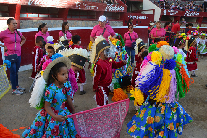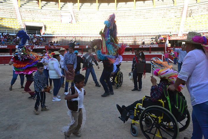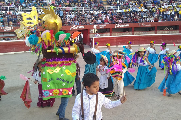 Gonzalo Reyes / La Voz de Michoacán Fotos de Jaime Lagunas Morelia, Michoacán. Se cumplió la tradición y, de nueva cuenta, la Plaza de Toros Monumental de Morelia fue sede de un martes de Carnaval. Un regreso importante, ya que el año pasado, por circunstancias ajenas a la buena disposición, no pudo llevarse a efecto tan representativa festividad, donde la algarabía y el bullicio se funden con la cordialidad y el pasado y el presente se toman de la mano, haciendo tradicionales diversas manifestaciones en torno al toro que, por la modernidad, están cayendo en desuso. La Monumental de Morelia tiene más de seis décadas de existencia y casi a la par se empezaron a celebrar los martes de Carnaval en esta plaza, que formalizaron los miembros del Sindicato de Espectáculos Taurinos de Morelia. Ahora se retoma con el entusiasmo de emprender la reconquista de aquellos días tan grandiosos, cuando la plaza resultaba insuficiente. Ahora convocaron, como ya también es una tradición, a los jardines de niños de Morelia con la esperanza y promesa de lograr retomar aquellas grandes tardes. Los niños del Centro de Atención Múltiple, una destacada participación. Ya desde las 3:00 de la tarde se vivía un gran festejo alrededor de la plaza, en absoluto orden y colorido ante la formalidad de esta actividad que ya se considera casi de carácter académico. Entre ajetreo y cascarones, cintas multicolor, puestos que recuerdan las fiestas del pueblo con su entusiasmo, fueron ingresando los niños a los palcos asignados previo a su intervención. El calor estaba a todo lo que daba y, entre la algarabía, se abrieron las puertas del ruedo de la plaza: una coreografía de jóvenes estudiantes con música michoacana dio vida a la mariposa monarca en un mensaje de lo nuestro, lo que identifica a Michoacán en el mundo entero y con la importancia de preservar nuestros recursos, ahora que la plaza fue sede para tantos niños que esperaban con impaciencia que se dejaran ver los toritos de petate, esos que tanto bullicio generan por las calles de la ciudad, ahora que se daba la oportunidad de apreciarlos a plenitud en el centro del ruedo. Con la disciplina de los maestros y la organización de los anfitriones, la algarabía multicolor inundó pronto el ruedo de la Monumental. Fueron desfilando uno a uno los planteles y en tribunas los gritos y porras de apoyo no se hicieron esperar con el confeti y los cascarones rellenos de confeti para dar la nota al evento, donde los padres y familiares de los niños participantes expresaban su emoción al ver a sus hijos conservando esta tradición incluyente, ya que el Centro de Atención Múltiple (CAM 9Y) se llevó los honores y la más grandiosa de las ovaciones al atestiguar el esfuerzo de los niños con capacidades diferentes hacer su mejor desempeño con sus maestras, para traducir el momento en las más fuertes emociones al compás de la Banda El Retinto, que nunca dejó de interpretar los más pintorescos sones dedicados a los toritos de petate. Los juegos y concursos de la ocasión estuvieron presentes y los niños tomaron parte activa: tal como se apreciaba en años anteriores, les soltaron la gallina y el ruedo no alcanzaba para correr; algunos rodaban por la arena en el intento de atrapar el ave de corral, ya que quien lo lograra iba a tener su recompensa, además de que para podrán disfrutar de un caldo de gallina pues también se constituyó en premio que se llevaron por igual en el grupo de niños como de niñas que se formaron en esta actividad, todo en un ambiente muy pintoresco y divertido para todos los asistentes. La Escuela Normal de Educación Física tuvo una apasionada participación y estos jóvenes fueron el preámbulo para la participación de los toritos grandes que todos, y sobre todo los niños, esperaban con expectación: estas obras de arte que, según sus artífices, llegan a tener un costo de más de 10 mil pesos, con dos meses de trabajo continuo entre tres personas, lo que justifica la pasión por conservar el torito de petate de Morelia, ya que es único y muy diferente a los toros de petate del resto de las localidades donde se expresa esta manifestación del Carnaval. Como final del evento, todos los participantes recibieron su reconocimiento y se despidió al decano de los apaches de Morelia, don José, que a sus 91 años dio en el centro de la plaza su último baile después de 60 años siguiendo al torito de petate en sus danzas por las calles de Morelia, ahí, donde esta tradición a través del tiempo se fue creando y perpetuando a la vez. Don José, decano de los apaches en los toritos de Morelia.