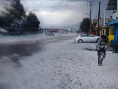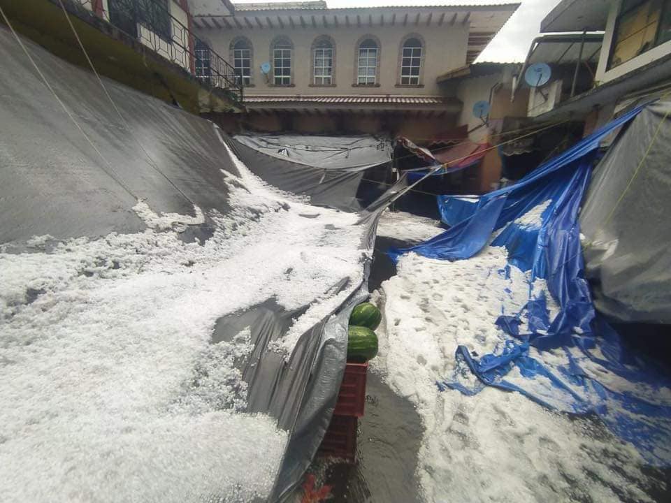 Granizada intensa en Paracho provoca derrumbes y pinta las calles de blanco