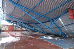 La precipitación se registra en la mayoría de la cabecera municipal, la fuerte lluvia dejo algunos destrozos, entre ellos el techo de una escuela que se derrumbó y la carpa de un circo que se desplomó tras la lluvia.