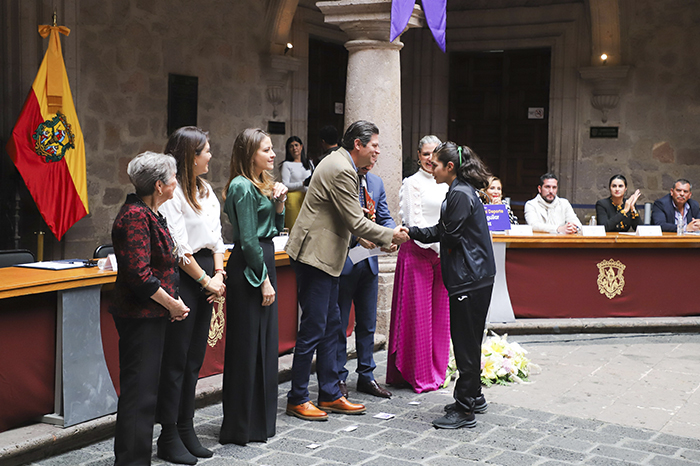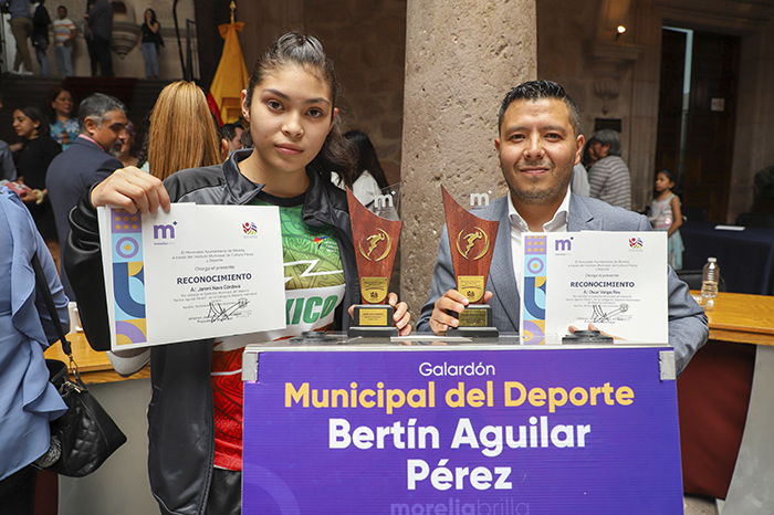 Redacción / La Voz de Michoacán Morelia, Michoacán. La taekwondoína Jareni Nava y su entrenador Oscar Vargas, representantes de la Universidad Vasco de Quiroga (UVAQ), recibieron el Galardón Municipal del Deporte Bertín Aguilar 2022, luego de un año lleno de logros. Jareni es estudiante de la Prepa UVAQ. Es nueve veces campeona nacional, seleccionada nacional juvenil, campeona panamericana 2022, mundialista, cuatro veces campeona internacional, lideresa del ranking nacional y continental, cuarta de la clasificación mundial, por lo que se dijo muy motivada para continuar en su carrera deportiva. Foto: Cortesía. Oscar Vargas es el entrenador de la selección de tae kwon do en la UVAQ. Tiene más de 15 años de trayectoria, en los que ha sido coach de la selección michoacana en olimpiadas nacionales, así como en los eventos del deporte estudiantil, en los que ha consolidado a taekwondoínes infantiles y juveniles. Jareni Nava y Oscar Vargas recibieron el galardón Municipal del Deporte de manos del alcalde de Morelia, Alfonso Martínez Alcázar, quien destacó su labor como un ejemplo de trabajo, constancia y éxito. Foto: Cortesía. Foto: Cortesía. #DeporteUniversitario #TarKwonDoEstudiantil #TeamUVAQ