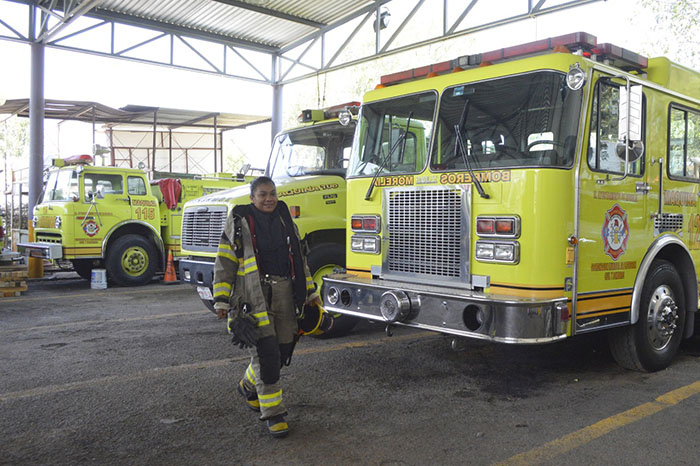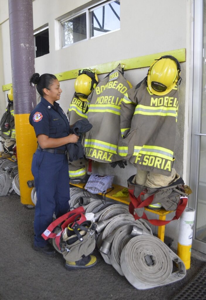 Arturo Molina / La Voz de Michoacán Morelia, Michoacán. El peligro, los pesados horarios laborales y otros obstáculos no han impedido a Imelda Alcaraz cumplir su sueño de ser bombera y ayudar a la ciudadanía. Día con día se alista para una jornada llena de peligros y sobresaltos, pero en donde el bien a la sociedad es lo primero. Debido al tradicionalismo todavía imperante reconoce que, como mujer, ha tenido que sortear una mayor cantidad de pruebas que la han colocado en un puesto donde hasta hace años, era exclusivo para los varones. Imelda es madre de familia, esposa y bombera. Desde hace ya casi cinco años se integró a las filas de los bomberos de Morelia en la Coordinación Municipal de Protección Civil, desde donde apoya con su esfuerzo a todos los morelianos. El trabajo es pesado, literal. Sólo el equipo de bombero le pesa más de 15 kilos, aunado al resto de herramienta que tiene que portar durante las emergencias al interior y exterior de la zona urbana. A esto se le suma lo más importante: poner la vida en la línea de fuego, pero las lesiones sufridas durante las faenas de rescate no le han asustado. Foto: Samuel Herrera Jr / La Voz de Michoacán. Ya no es la única. En los últimos años ha visto crecer poco a poco el personal femenino en la Estación de Bomberos, lo que interpreta como una conquista de las mujeres para alcanzar puestos de alta responsabilidad, riesgo e importancia para la sociedad, porque apagar incendios está sin duda entre los oficios más riesgosos. En entrevista para La Voz de Michoacán, Imelda contó que como ella, muchas mujeres han llegado a puestos donde existe un gran riesgo inherente para demostrar que son igual o más capaces –¿y por qué no?, temerarias- que los compañeros hombres. Lo ha demostrado, se ha ganado su lugar con su trabajo y su responsabilidad a prueba de llamas. Al menos en el caso de la Estación de Bomberos, nunca ha sido agredida o discriminada por razón de género. “Aquí tengo desde el 2015. Mi hermana estaba dentro de las emergencias y la veía que me contaba sus historias y yo quería ser como ella. Al principio no puse un ‘stop’, solamente quise hacerlo y lo hice, para mí no fue un límite”, relató. Sobre el cuerpo de bomberos, aseguró que los tradicionalismos y roles de género se dejan de lado: “en esta parte todos somos iguales y a todos nos tratan de la misma manera; tenemos que hacer lo de un hombre y ellos también tienen que hacer de lo nuestro, porque aquí hay que cocinar, que barrer, hay que tender camas, lavar trastes”. Foto: Samuel Herrera Jr / La Voz de Michoacán. Es madre de un bebé de pocos meses de nacido. Asevera que por lo anterior cada día de trabajo en el rescate de civiles y la atención a contingencias lo toma con la mayor seriedad posible, quiere ayudar, pero también quiere regresar a casa sana y salva. Ha encontrado en su familia y su esposo, el apoyo necesario para continuar desempeñándose como bombero. Recuerda muchos momentos impactantes en sus 5 años como vulcana. Destaca uno en especial, cuando junto con sus compañeros tuvieron que atender el nacimiento de un bebé en una vivienda al poniente de Morelia. Debido a la escasez de ambulancias y servicios médicos en esa zona de la ciudad, los bomberos tuvieron que garantizar el alumbramiento y el posterior traslado de la mujer y el recién nacido para su valoración médica, en lo que se convirtió en uno de los momentos más impactantes u emotivos de su profesión. “Aquí trabajamos 24 por 48, mi esposo me ayuda con mi bebé… o mi mamá. Saliendo de aquí veo todo lo de mi casa”, narró. “Les pido a las mujeres que no se limiten, es una profesión muy bonita y nos ayuda a crecer como mujeres, no es solamente para hombres. Me parece que llegamos un progreso en la mentalidad no solo con los hombres sino con las mujeres, que luego se limitan a cosas que siempre podemos hacer”.