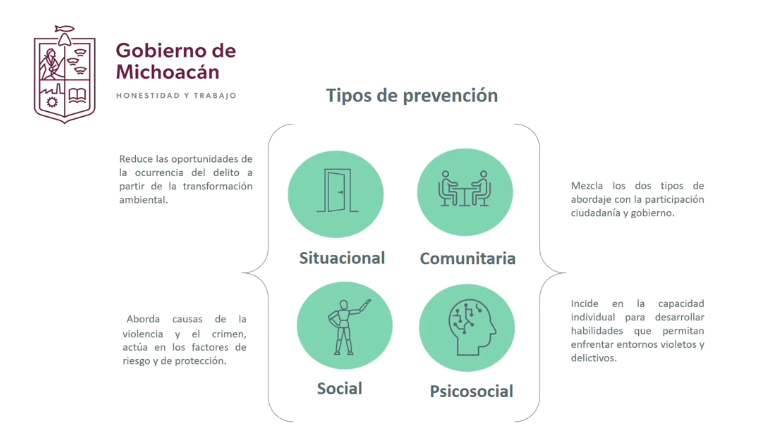 Morelia, Michoacán. Lorena Cortés Villaseñor, directora del Centro Estatal de Prevención del Delito y Participación Ciudadana, dio a conocer que combatir el crimen tiene dos vertientes, desde el ámbito punitivo y desde la prevención social de la violencia y la delincuencia.