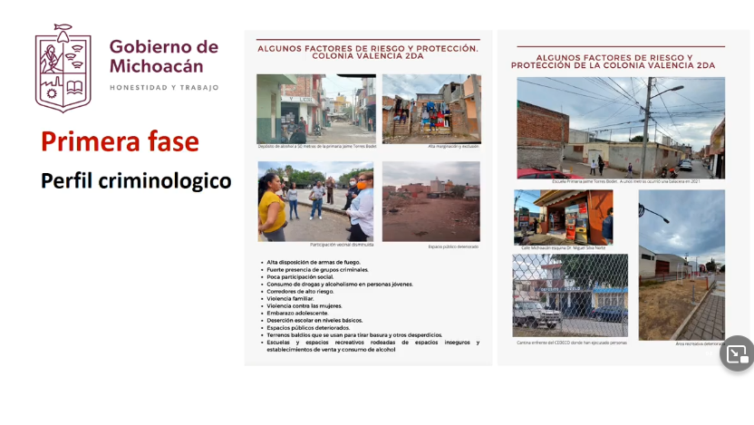 Cortés Villaseñor informó que la intervención que se ha realizado en Zamora consiste en tres fases: la primera, en hacer un perfil criminológico de las colonias detectadas de mayor incidencia delictiva, mayor criminalidad; la segunda con la intervención de los programas de prevención y la tercera darle seguimiento a los programas de prevención.