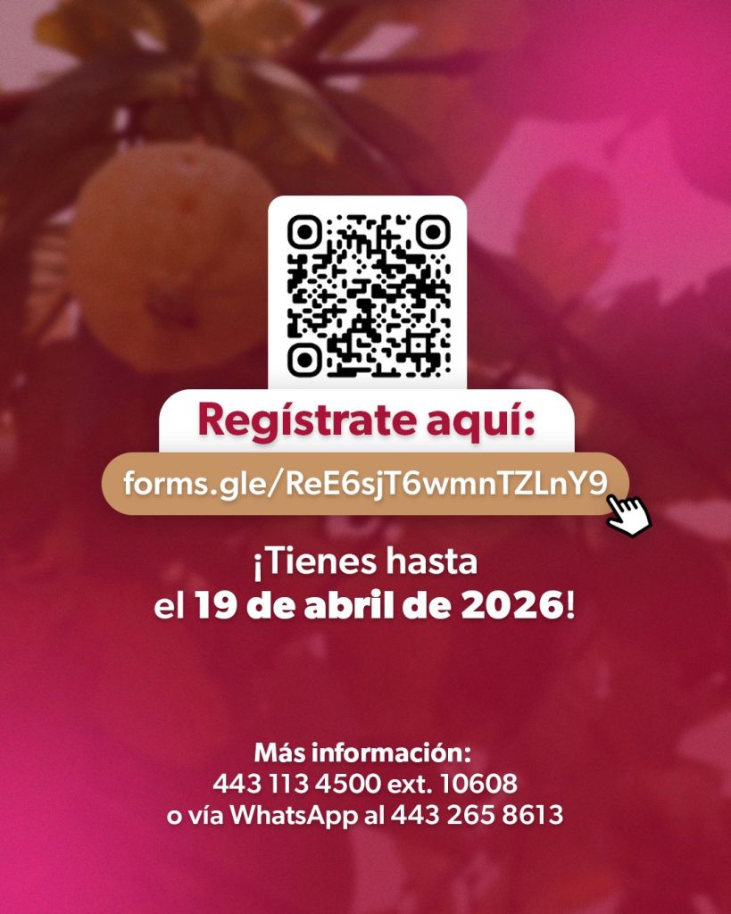Las personas interesadas pueden registrarse a través del formulario https://forms.gle/ReE6sjT6wmnTZLnY9 o solicitar orientación al teléfono 443 113 4500 ext. 10608, así como vía WhatsApp al 443 265 8613.