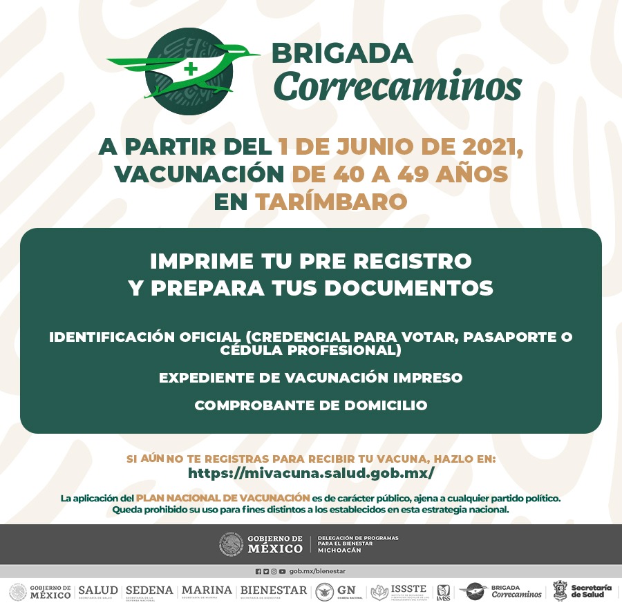 Redacción / La Voz de Michoacán Morelia, Michoacán. Con la finalidad de avanzar en la vacunación contra el COVID-19, a partir del martes 01 de junio iniciará la inmunización a personas de 50 a 59 años de edad y mujeres embarazadas mayores de 18 años en 51 municipios de la entidad; además, en Tarímbaro comenzará la aplicación a personas de 40 a 49 años de edad. Todos con dosis de Oxford-AstraZeneca. Para facilitar el proceso de atención, las personas deberán registrarse en la plataforma mivacuna.salud.gob.mx, descargar e imprimir su expediente de vacunación y acudir al centro habilitado en su municipio de residencia, de acuerdo a la convocatoria que se establezca en esa localidad. Las Brigadas Correcaminos serán desplegadas para atender a personas de 50 a 59 años de edad y mujeres embarazadas, a partir de su novena semana de gestación, del 01 al 04 junio, en los siguientes municipios: Epitacio Huerta, Irimbo, Queréndaro, Senguio, Nocupétaro, Tiquicheo de Nicolás Romero, Tzitzio, Cotija, Chavinda, Marcos Castellanos, Pajacuarán, Cojumatlán de Régules, Tingüindín, Tocumbo, Villamar, Vista Hermosa, Acuitzio, Huiramba, Lagunillas. También Madero, Taretan, Tingambato, Tzintzuntzan, Ziracuaretiro, Álvaro Obregón, Angamacutiro, Copándaro, Chucándiro, Huandacareo, Huaniqueo, Indaparapeo, Jiménez, Morelos, Panindícuaro, Penjamillo, Santa Ana Maya, Charapan, Erongarícuaro. Además de Purépero, Tlazazalca, Churintzio, Ecuandureo, Numarán, Tanhuato, Zináparo, Angangueo, Juárez, Jungapeo, Ocampo, Susupuato y Tuzantla. Asimismo, este 01 de junio arranca en el municipio de Tarímbaro la inmunización al sector de 40 a 49 años en el estado, por lo que se hace un llamado a la población de este grupo etario a esperar su turno y estar al pendiente de la convocatoria oficial. Cabe recordar que continúa abierto el registro en la plataforma de Internet mivacuna.salud.gob.mx. En caso de que la movilidad de la persona sea limitada, deberán ingresar los datos a través de la siguiente página para que la brigada móvil Correcaminos acuda a su domicilio: http://vacunacovid.gob.mx/wordpress/priorizacion-de-personas-a-vacunar/