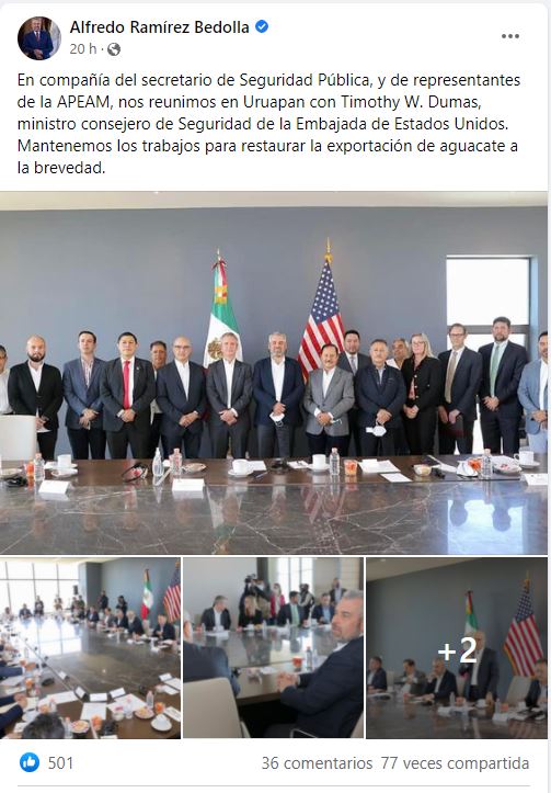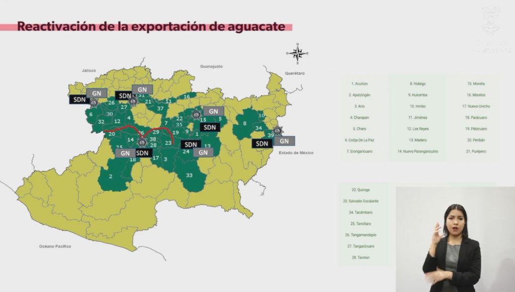 Omar Cuiriz / La Voz de Michoacán Morelia, Michoacán.- El gobernador Alfredo Ramírez Bedolla informo que la reactivación de exportación de aguacate es prioritario en este momento para el estado, esto luego de que el sábado de la semana pasada fuera suspendido el programa de exportación a Estados Unidos. El mandatario dijo en conferencia de prensa que es urgente porque la industria del aguacate se traduce en 31 mil productores de aguacate, 75 empacadores, 48 mil huertos, más de 300 mil empleos directos e indirectos, 15 mil cortadores-jornaleros, además de que en 2021 se tuvo una producción de 1 millón 279 toneladas que se mandaron al extranjero siendo un millón a Estados Unidos y el resto a otras partes del mundo. Ramírez Bedolla informó que se han tenido reuniones diarias con la Embajada de Estados Unidos, con la ASDA y APEAM y detalló que en la primera reunión se acordó crear una figura y un protocolo de inteligencia independiente por parte de la APEAM, que esté en comunicación con la ASDA y que tendrá como tareas reforzar los temas de trazabilidad y software que maneja del corte y trasladado. Dijo que ayer miércoles se pactaron otros acuerdos en Uruapan, uno es crear una célula de actuación de seguridad con instancias federales, Guardia Nacional, SSP y FGEM y otro pacto es un protocolo de actuación en 63 municipios. Sobre este último punto, dijo que se trata la mancha aguacatera que se encuentra en Michoacán y que destaca la inclusión de Morelia, capital del estado. El mandatario mostro un mapa en el que mostró los municipios y la ubicación de los cuarteles y comisarías de la GN, SSP y Sedena que se encuentran en estos, mismos -informó- que formarán parte de inteligencia, acompañamiento, acción y reacción ante cualquier eventualidad y riesgo que tengan los inspectores de USDA enviados a Michoacán. Explicó que estos trabajadores de Estados Unidos realizan una inspección sanitaria de verificación y certificación de huertos y empaques y quienes autorizan que un empaque cumpla con requisitos. ES CUESTIÓN DE DÍAS El gobernador dijo que espera que esta semana se tenga el visto bueno de EUA sobre la estrategia propuesta y así reactivar la exportación. Estamos con mucho ánimo, nos han dicho que es una suspensión temporal que se podrá levantar en cualquier momento y que esta semana esperamos que se dé el visto bueno de este esquema que trabajamos en conjunto con el ministro de Seguridad de la embajada de los Estados Unidos”. Adelanto que si todo marcha como se espera, la próxima semana se reactivaría la exportación de aguacate a Estados Unidos. La exportación es una parte, un 40 o 45 por ciento y el 55 o 60 por ciento es mercado nacional, los mexicanos consumimos hasta 9 kilos al año de aguacate, los norteamericanos consumen 3 kilos, claro que queremos que consuman más, pero los priscales consumidores somos nosotros”. Destacó que en Michoacán después de las remesas, el aguacate es la segunda fuente de ingresos en dólares: “tenemos 4 mil millones de dólares en remesas y casi 3 mil 100 millones de dólares de ingreso de exportación de aguacate”.