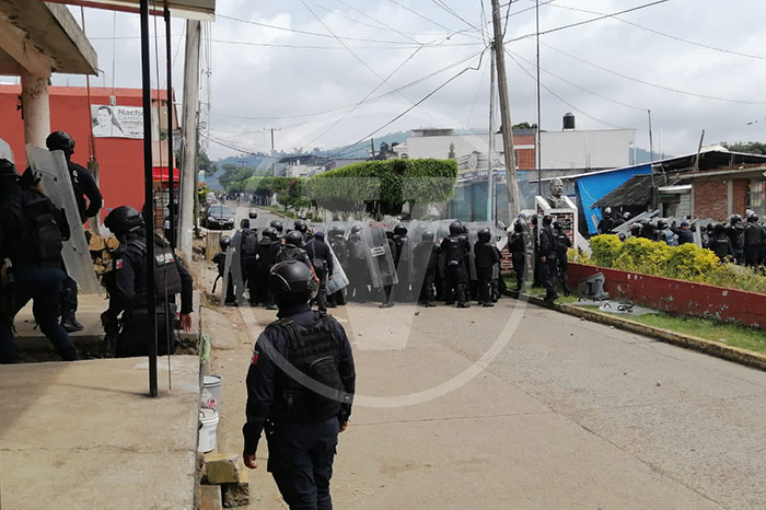 Redacción / La Voz de Michoacán Uruapan, Michoacán. Un grupo de estudiantes normalistas, egresado y docentes de la sección indígena de la CNTE, intentaron instalar un bloqueo en las vías férreas a la altura de la comunidad de Caltzontzin, municipio de Uruapan, lo que derivó en un enfrentamiento con elementos de la Guardia Civil. El intento de bloqueo desató una movilización inmediata de oficiales del Agrupamiento de Restablecimiento del Orden Público (AROP), mismos que impidieron que los manifestantes se apoderaran de las vías del tren, sin embargo, ello provocó que los inconformes comenzaran a lanzar cohetones, piedras, botellas y palos en contra de los uniformados. Luego de varios minutos los granaderos con uso de gas lacrimógeno lograron replegar al contingente hacia el interior de la comunidad, sin que lograran su cometido de cerrar el paso al ferrocarril, sin embargo, en la zona aún persiste el enfrentamiento. En el lugar se pudo observar que al menos uno de los policías fue alcanzado por los proyectiles y de inmediato fue auxiliado por sus compañeros.