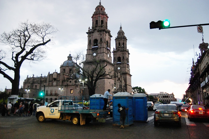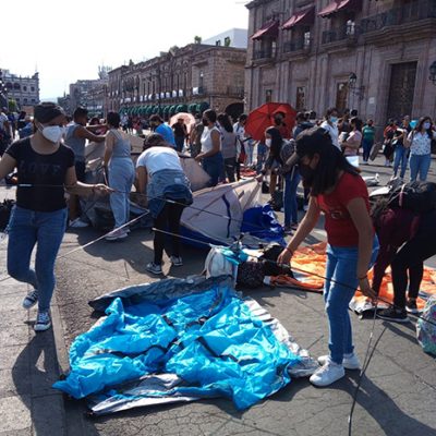 Instalan luz y sanitarios al plantón de normalistas en el Centro de Morelia