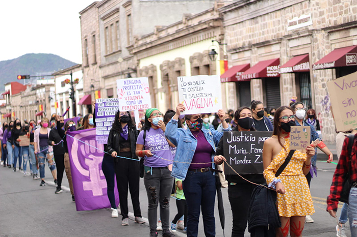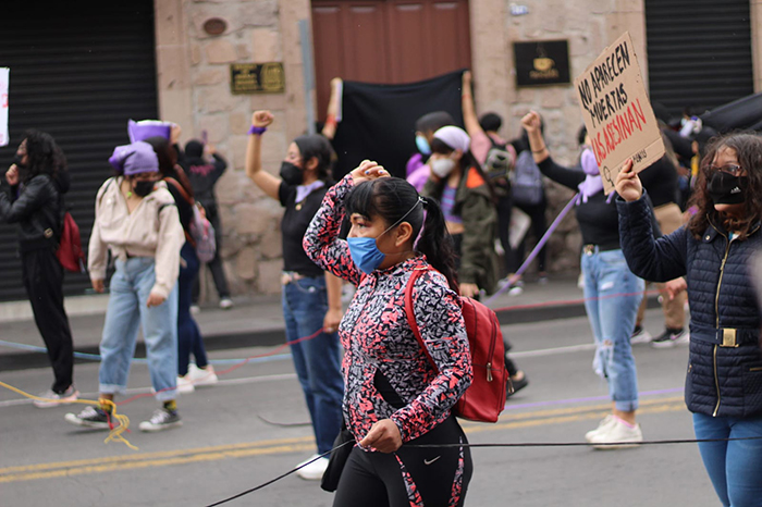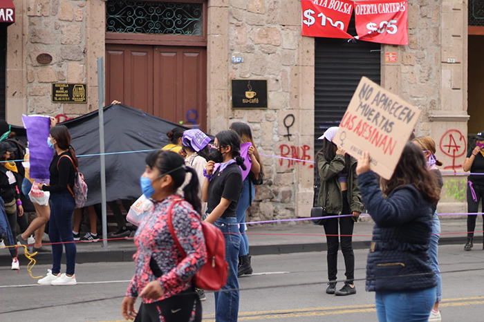 Jorge Ávila / La Voz de Michoacán Fotos y videos de Víctor Ramírez. Morelia, Michoacán. La Red de Colectivas de Michoacán convocó a las mujeres a salir a marchar este domingo 4 de julio en la capital del estado, para exigir a las autoridades un alto a los feminicidios que se registran en la entidad. La marcha inició poco después de las 16:00 horas, partiendo de la Plaza de Villalongín hacia le primer cuadro de la ciudad, en Palacio de gobierno. Al frente de la marcha iban los familiares de Jessica González Villaseñor, joven víctima de feminicidio en Morelia. A pocos pasos de iniciada la marcha, los destrozos por parte del Bloque Negro no se hicieron esperar, con pintas y cristales rotos, ante la impotencia de las mujeres, a quienes el Estado y la sociedad les han fallado en brindar seguridad a las niñas y mujeres. Y es que al haber 6 víctimas de feminicidio en los últimos días, de un universo de 22 mujeres asesinadas en el mes de junio, el clamor es fuerte y claro: alto a la violencia de género, alto a los feminicidios y justicia para las víctimas. Cabe resaltar que, además de la marcha en Morelia, a las 17:00 horas se convocó a otra marcha en Los Reyes para exigir justicia por Lizeth Flores, quien el pasado 15 de junio salió de su trabajo alrededor de las cinco de la tarde. Dijo a un familiar que iría a cargar gasolina para su moto y por un café que compraría en el OXXO. El 17 del mes pasado falleció en una clínica de Guadalajara. Alrededor de las 17:00 horas, el grupo, que poco a poco se fue nutriendo, llegó a las afueras de Palacio de Gobierno, donde representantes de la Red de Colectivas emitieron un duro posicionamiento contra la violencia de género y la opaca acción de las autoridades encargadas de brindar seguridad y procurar justicia. Además, la madre de Jessica González Villaseñor emitió un enérgico mensaje que fue respondido al unísono con un "¡NO ESTÁS SOLA!". CRUELES ASESINATOS Karen Mayte Álvarez Barajas Karen Mayte Álvarez Barajas tenía 20 años de edad y era originaria del municipio de Lázaro Cárdenas. Gamer, estudiante de Criminología y Criminalística y empleada de una estética, Karen fue hallada entre un charco de sangre al interior del sanitario del establecimiento donde laboraba, en la tenencia de Buenos Aires, el pasado 16 de junio. Lizeth Flores Cázarez El pasado 15 de junio, Lizeth Flores Cázarez salió de su trabajo alrededor de las cinco de la tarde. Dijo a un familiar que iría a cargar gasolina para su moto y por un café que compraría en el OXXO. Pero Lizeth, trabajadora de un negocio de comida en Los Reyes, no llegó a su casa ni en la hora límite que tenían por regla en su familia: las once de la noche. Dos días después de que supieron por última vez de ella, el 17 de junio recibieron una llamada donde informaban que Lizeth se encontraba hospitalizada en la Cruz Verde de Guadalajara. Cuando llegaron a la clínica, relató su tío Eduardo Cázares, les dijeron que la mujer había fallecido esa mañana a las 11:30 horas. Danna Kenneth Carbajal Martínez El sábado 26 de junio, aproximadamente a las 20:50 horas, Danna Kenneth Carbajal Martínez fue vista con vida por última vez en la colonia Miguel Hidalgo, de Zitácuaro. Un día después de su desaparición, la joven de 24 años de edad fue localizada sin vida cerca de la Planta de Aguas Residuales de Zitácuaro. Danna Kenneth presentó heridas en el cuello producidas por un arma punzocortante y su cuerpo fue llevado al Servicio Médico Forense para practicarle la necropsia de ley y obtener más evidencias que permitan el avance de las investigaciones. Anahí y Liz Los cadáveres fueron encontrados a espaldas del Hotel Campestre, en la colonia Chula Vista, que está en la carretera Tepalcatepec-Coalcomán. Las víctimas fueron identificadas como Ma. Anahí A. y Lizbeth C., quienes a simple vista presentaron lesiones producidas por proyectil de arma de fuego. Alma Rojas Una joven de 23 años fue asesinada a tiros en el municipio de Zinapécuaro: se trata de Alma R., quien era buscada por su familia desde el 28 de junio, cuando salió de su casa y ya no regresó. Este miércoles, su cuerpo fue encontrado en un predio de este municipio. En redes sociales, los familiares de la joven dieron a conocer su desaparición y solicitaban ayuda para encontrarla, sin embargo, esta mañana se recibió un reporte en el 911 que alertaba de un cadáver abandonado cerca de un camino de terracería que conduce a la localidad de San Nicolás Simirao, en Zinapécuaro. NO SON LAS ÚNICAS Estas 6 jóvenes no son las únicas mujeres que han sido asesinadas en Michoacán, ya que, según el recuento diario que La Voz de Michoacán lleva, sólo en el mes de junio en la entidad fueron asesinadas 22 mujeres en distintos municipios, y si bien no todos los crímenes tienen las características del feminicidio, no dejan de ser mujeres víctimas de la violencia. El 1 de junio, en la ciudad de Zamora, mientras circulaban a bordo de una bicicleta, una pareja fue atacada a tiros. El crimen se registró a espaldas del Hospital Regional, sobre la avenida Del Vergel, entre las avenidas 20 de Noviembre y Ferrocarril. El varón quedó lesionado, en tanto que la mujer perdió la vida en el lugar de los hechos. EL 2 de junio, Saraí P.G., de 25 años, con domicilio en la colonia Cruz Gorda, sobre la Avenida Madero Norte, en Huetamo, fue herida con un arma punzocortante en su propia casa. Debido a la gravedad de las lesiones, falleció horas más tarde en un hospital. Ese mismo día, en Uruapan, un hombre y una mujer fueron asesinados, en tanto que un varón más resultó lesionado en la carretera Uruapan-Paracho, a la altura de la desviación a Los Reyes. El 7 de junio, en Charo, fue encontrado el cuerpo maniatado de una mujer asesinada de un balazo en la cabeza, a la orilla del Camino Real, aledaño a la calle Prolongación Morelos Oriente de la cabecera municipal de Charo. La víctima no fue identi