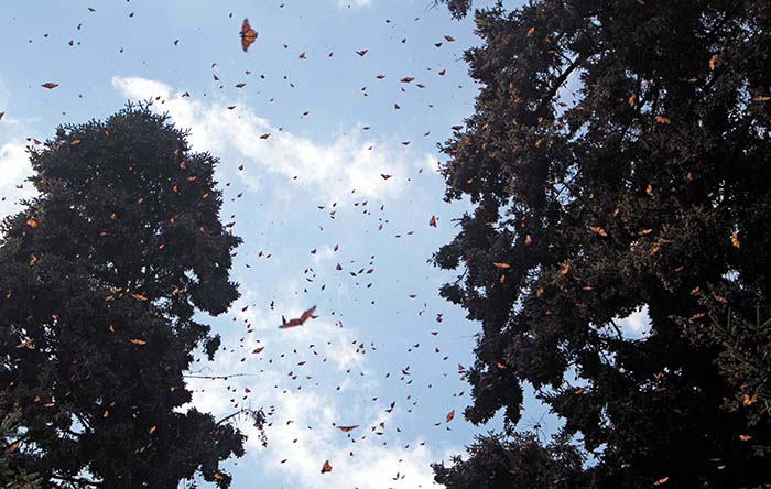 Redacción / La Voz de Michoacán Morelia, Michoacán. En viaje de 4 mil 500 kilómetros desde Canadá, pasando por Estados Unidos y después por el norte de México, las mariposas monarca han llegado por fin a Michoacán, pues esta semana se reportó el avistamiento de los primeros ejemplares en llegar a los santuarios ubicados en esta entidad y en el Estado de México. Tras volar durante dos meses a lo largo de tres países, las mariposas comenzaron su arribo a los bosques de oyameles de El Rosario y otras zonas consideradas como patrimonio natural de la humanidad. Para mediados de noviembre habrán llegado la mayoría de los lepidópteros para pasar el invierno en los bosques michoacanos, que reúnen las condiciones ideales para permitirles desarrollarse y aparearse: altitud de entre 2 mil 300 y 3 mil 500 metros sobre el nivel del mar, buena temperatura, humedad y exposición a los rayos solares, entre otros. https://twitter.com/Conabio/status/1321847245663293441 Esta semana los santuarios de Michoacán recibieron a los primeros grupos de la temporada de migración 2020-2021, la cual, hasta ahora, está restringida a turistas, debido a la pandemia por COVID-19. Ejidatarios de El Rosario recordaron que aún no están permitidas las visitas turísticas, sino hasta que la Secretaría de Salud de Michoacán (SSM) autorice la apertura, con base en el semáforo epidemiológico y con los protocolos preventivos para evitar contagios. Sin embargo, la Comisión Nacional de Áreas Naturales Protegidas (Conanp) informó que se analiza la posibilidad de no abrir por primera vez al público los santuarios de la mariposa para evitar riesgos de contagio en los ejidos y comunidades. Hasta ahora se mantienen instaladas las mesas de trabajo con la Secretaría de Salud y los gobiernos de Michoacán y Estado de México, con el fin de decidir si estos espacios permanecerán cerrados, pues aunque el turismo es una fuente de ingreso para los habitantes, recibir a turistas esta vez puede ponerlos en peligro. En el Estado de México una comunidad que tiene un santuario de hibernación, llamado Cerro Pelón, decidió no recibir a turistas esta temporada, y los otros cinco santuarios que se encuentran en ambas entidades están a la espera de que se tome una decisión. Por lo pronto, los cuidadores de los bosques recibirán cursos de capacitación sobre las medidas sanitarias en la venta de alimentos y artesanías, así como para el alojamiento de visitantes, en caso de que abran los santuarios. Un vuelo titánico Ajenas a la pandemia, las mariposas recorren alrededor de 120 kilómetros por día y avanzan por grupos hasta llegar a los santuarios. A finales de marzo, cuando alcanzan su madurez, emprenden su viaje de retorno a los países del norte. Las monarcas utilizan varias rutas migratorias: las que llegan a México vienen de la zona ubicada entre las Rocallosas y los Grandes Lagos, bajan por la Sierra Madre Oriental, entran al Altiplano por las montañas más bajas y llegan a los estados de México y Michoacán. Foto: El Universal. Otras, viajan de la zona ubicada entre el océano Pacífico y las montañas Rocallosas, hacia el estado de California y aquellas que habitan entre el océano Atlántico y los Grandes Lagos cruzan los estados de Carolina y Florida para llegar a Cuba. Los santuarios en México son el Cerro Altamirano, Cerro Pelón, Sierra Chincua, Sierra del Campanario, Cerro Pichacho y Chivati-Huacal, que llegan a albergar cada uno entre 7 millones y 20 millones de mariposas.