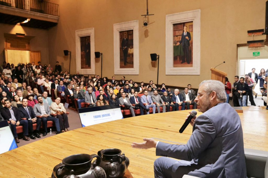 Al impartir la conferencia magistral "Figuras jurídicas en la protección intelectual de los productos artesanales michoacanos", en la Universidad Michoacana de San Nicolás de Hidalgo (UMSNH), el mandatario compartió que el Gobierno del Estado trabaja en el registro de seis indicaciones geográficas: aguacate, queso Cotija, cobre de Santa Clara del Cobre, catrinas de Capula, figuras de pasta de caña de maíz, y ate de Morelia.