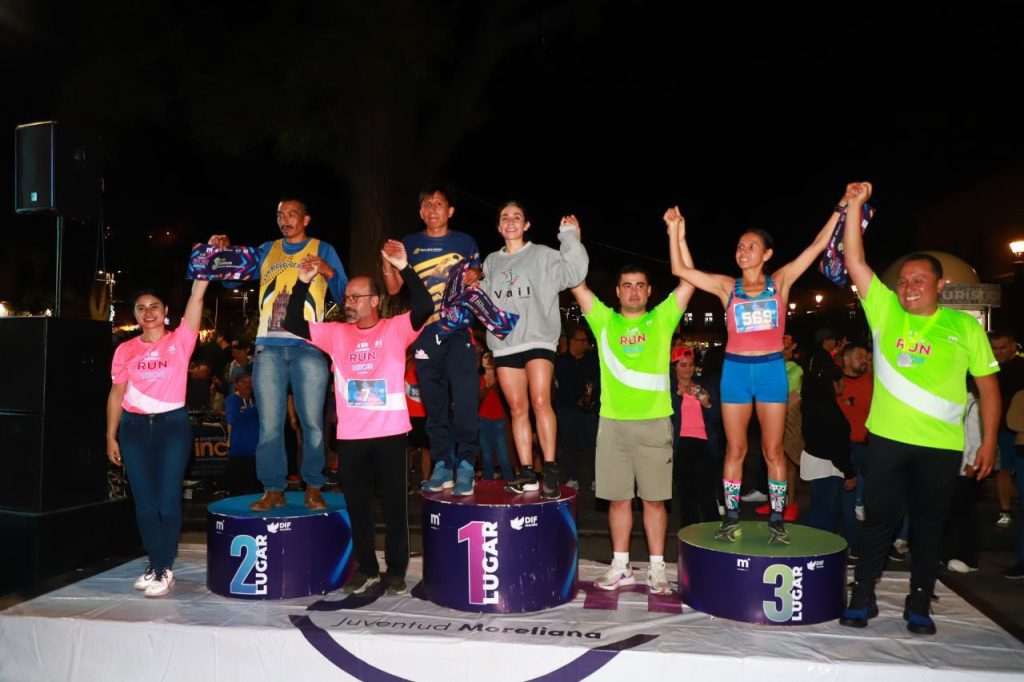 Redacción / La Voz de Michoacán Morelia, Michoacán. Todo un éxito resultó la primera carrera “Run Neón Morelia” que organizó el ayuntamiento de Morelia y que logró reunir a más de mil 200 competidores. Durante la noche de este sábado la avenida Madero se llenó de familias, grupos de amigos y atletas de alto rendimiento que disfrutaron de un recorrido único desde el principal cuadro de la ciudad hasta el Centro Deportivo Ejército de la Revolución. El trayecto constó de 5 kilómetros en los que los edificios históricos como el Acueducto y Las Tarascas destacaron en el trayecto y donde cientos de personas se dieron cita para correr, trotar o caminar, esto en el marco de la celebración del Día Internacional de la Juventud. El Gobierno de Morelia, a través del DIF Municipal, Colegio de Morelia, IMCUFIDE e IJUM, reconoce la participación de las morelianas y morelianos que contribuyen a la construcción de la paz en el municipio al participar en estos eventos que buscan la convivencia social. Ganadores de la 1ra Carrera “Run Neón Morelia”: Categoría femenil 1er lugar Flores García Gabriela. 2do lugar Silva Hinojosa Hellen Jeanet. 3er lugar Ruíz Fernández Misha Elena. Categoría Varonil 1er lugar, González Arriaga Francisco. 2do lugar Guzmán Julio César. 3er lugar Ortiz Reyes Zeferino