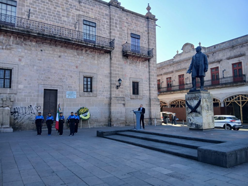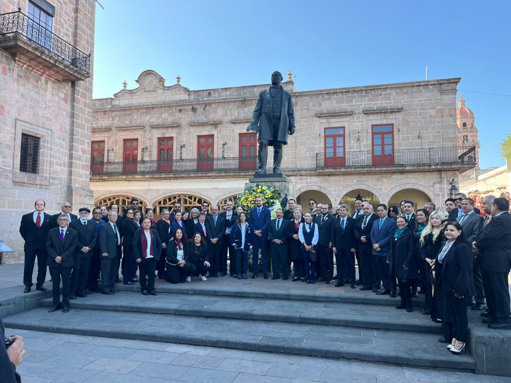 Redacción / La Voz de Michoacán Morelia, Michoacán. - El Ayuntamiento de Morelia conmemoró este sábado el CCXX Aniversario del Natalicio de Benito Juárez, con un acto cívico en el que se llamó a que el recuerdo del Benemérito de las Américas sirva de inspiración para la defensa de la legalidad. Héctor Manuel García Chávez, muy respetable gran maestro de la Gran Logia Lautariana de México, fungió como orador oficial con un mensaje al pie del monumento a Benito Juárez, en la plaza que lleva su nombre en el corazón de la capital michoacana. Foto: Chris Hernández Durante su intervención, recordó los ideales del Benemérito de las Américas por defender la educación laica y la prevalecía del Derecho por encima de cualquier institución o poder. "Los principios no se heredan, se ejercen; y la legalidad no se presume, se defiende", manifestó el orador. Asistieron al evento Iván Fernando Barrales Alcántara, director general del Colegio de Morelia; José Murguia Magaña, director de la Clínica Municipal Poniente; así como los muy respetables grandes maestros y maestras de las diversas logias: Irma Valle González, María de los Angéles Vásquez Martínez, Emma Rivera Camacho, Iraide Rosales Navarro y Javier Velázquez López. Foto: Chris Hernández Cabe señalar que previamente se llevó a cabo el izamiento de bandera en la Plaza Melchor Ocampo y, al término de la ceremonia cívica, se cumplió con el tradicional depósito de ofrenda floral.