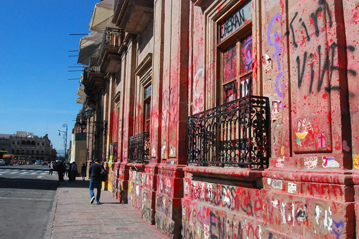 Arturo Molina / La Voz de Michoacán Morelia, Michoacán. Luego de meses de manifestaciones y plantones en la zona del Centro Histórico de Morelia, los daños a la infraestructura de monumentos por concepto de grafitis superan los mil 200 metros cuadrados, tanto en edificios privados como públicos. Inmuebles como Palacio de Gobierno, Palacio Federal, templos ubicados en la avenida Madero y el Acueducto de Morelia son los puntos que requieren de mayor intervención en cuanto a la fachada se refiere, por lo que ya las autoridades municipales comenzaron a proyectar las labores de restauración. La reparación de las fachadas del primer cuadro en el corredor que va desde el Acueducto hasta el Obelisco a Lázaro Cárdenas contará con la colaboración del personal del Instituto Nacional de Antropología e Historia (INAH) y la gerencia de Patrimonio Histórico de Morelia. En voz de Gaspar Hernández Razo, especialista y gerente de Patrimonio Municipal, la tarea es compleja desde la superficie y los propios costos que tendrá el despintar cada una de las proclamas, letreros y dibujos trazados en la cantera rosa. Debido al largo proceso de lavado, despintado con uso de solventes y otros mecanismos tecnológicos, se estima que cada metro cuadrado de grafiti tendrá un costo de mil pesos, por lo que la cifra estimada para rehabilitar todas las fachadas alcanzaría el millón 200 mil pesos. “El Instituto Nacional de Antropología e Historia va a cubrir única y exclusiva las edificaciones que son Palacio de Gobierno, palacio Federal, los templos de las Monjas, la Catedral, y otras iglesias. Nosotros por indicación de nuestro alcalde estamos atacando lo que es el Acueducto, que ya atacamos 54 grafitis que estuvieron en estAs marchas”. Epicentro de protestas Estudiantes normalistas, el Frente Nacional de Lucha por el Socialismo, pueblos originarios, colectivos feministas y otras expresiones han manifestado su hartazgo y reclamos en el primer cuadro de la ciudad, varias veces mediante pintas. En segundo lugar se encuentran las pandillas y jóvenes que buscan “marcar territorio”; los grafiteros son considerados responsables importantes de las afectaciones al patrimonio de la ciudad, daños que incluso podrían poner en riesgo el estatus de Patrimonio de la Humanidad de la Ciudad de la Cantera Rosa. Foto: Sam Herrera Jr. Desde 2018 a la fecha, la postura del gobierno habría sido la de intervenir lo menos posible en la reparación de los inmuebles ante la constante agenda de manifestaciones que impacta al primer cuadro de la capital michoacana. En voz de Hernández Razo, para esta intervención se estarán aplicando otros mecanismos de cobertura a las fachadas para evitar que la pintura penetre directamente en los poros de la cantera rosa. Desde cal, alumbre y otros compuestos autorizados por el INAH, fungirán como escudo para los edificios históricos. “Son mil 217 metros cuadrados desde Las Tarascas hasta el obelisco. Estamos aplicando la normatividad como la indica el INAH. Se inicia con jabones neutro, solventes y un proceso de microfracturacion. Estamos recubriendo la mayor parte de la cantera con alumbre, cal apagada y recubrimientos naturales porque sabemos que las marchas van a seguir”, explicó el especialista. Hernández Razo exhortó de nueva cuenta al Congreso local a que se legisle en el tema de la protección de los inmuebles, toda vez que pese a que las leyes federales castigan este delito, en nuestro estado llega a menos de un tema administrativo. Foto: Sam Herrera Jr. El encargado de conservar los monumentos arquitectónicos de Morelia advirtió la importancia de conservar el título de Ciudad Patrimonio Cultural de la Humanidad que otorgó la organización de las Naciones Unidas para la Educación, la Ciencia y la Cultura (UNESCO), por lo que llamó a trabajar en asesoramiento con el Instituto Nacional de Antropología e Historia para modificar o restaurar las fachadas de los inmuebles. En total en todo el centro histórico de Morelia convergen más de mil 100 edificios y monumentos históricos cuyo valor va más allá de las simples fachadas. Si bien la estrategia de rehabilitación de muros se ha concentrado solo en la avenida Madero, otras zonas de barrios del primer cuadro siguen siendo afectadas por las pintas generadas por pandillas.