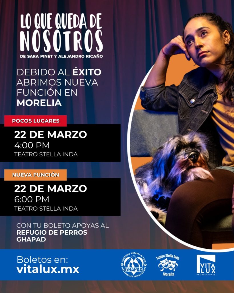Redacción / La Voz de Michoacán Morelia, Michoacán. Este sábado 14 y domingo 15 de marzo, de 12:00 a 15:00 horas, lomitos rescatados de la asociación Generando Hogares de Amor para Animales Desprotegidos (GHAPAD) estarán esperando a su mejor amigo en el estacionamiento de Petco La Huerta, durante una jornada de adopción que busca cambiar destinos marcados por el abandono. Los perritos llegan listos para comenzar una nueva historia. De acuerdo con Esmeralda Cerda Pizano, todos se encuentran en buenas condiciones físicas, esterilizados, desparasitados, vacunados, bañados e incluso perfumados, como si supieran que ese día podría aparecer la persona que transforme su vida. “Todos ellos son perritos rescatados en busca de un hogar. Han sido rehabilitados y están buscando segundas, terceras o incluso hasta cuartas oportunidades de una vida difícil que han tenido, ahora quieren encontrar un hogar amoroso para cuidar y disfrutar”, señaló. La activista recordó que cada adopción abre un nuevo espacio para continuar rescatando más lomitos en situación vulnerable, por lo que estas jornadas no solo significan esperanza para los animales presentes, sino también para aquellos que aún esperan ayuda. En paralelo, venderán boletos para la obra “Lo que queda de nosotros”, cuyo objetivo es recaudar recursos en beneficio del refugio GHAPAD. La puesta en escena, que ha conquistado al público jalisciense y ha provocado la apertura de más funciones, narra la historia de Toto, un perrito en situación de calle que enfrenta momentos de extrema dificultad, pero también instantes de alegría y aventura. La obra transmite un mensaje sensible y profundo, la vida no es únicamente tragedia, también es comedia, incluso para quienes han sufrido el abandono. La presentación se realizará el domingo 22 de marzo en el Teatro Stella Inda, con dos funciones programadas a las 16:00 y 18:00 horas. Los boletos también pueden adquirirse a través del sitio vitalux.mx. Este sábado y domingo te esperamos para adoptar o adquirir tus boletos para esta obra ha tocado corazones y la forma de percibir el mundo de los callejeritos.