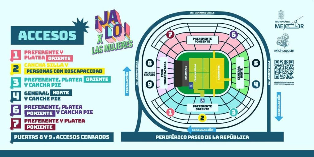 Morelia, Michoacán.- Todo está listo para el concierto de esta noche con Carín León, como parte del Jalo x las Mujeres, una iniciativa histórica del Gobierno de Michoacán contra la pobreza menstrual. “Hoy la música y la solidaridad se unen para transformar vidas”, afirmó Alejandra Anguiano González, secretaria de Igualdad Sustantiva y Desarrollo de las Mujeres Michoacanas. Señaló que los estacionamientos abrirán desde las 15:00 horas y las puertas de acceso al Estadio Morelos desde las 16:00 horas, ya que el concierto iniciará a las 21:00 horas, por lo que es importante que lleguen a tiempo e identifiquen bien la puerta que les dará acceso a la zona indicada en su boleto. PUERTAS: Por la Puerta 1 ingresarán las personas con boletos de zona Preferente y Platea Oriente; por la Puerta 2 para Cancha Silla y Personas con Discapacidad; por la Puerta 3 para Preferente, Platea Oriente y Cancha Pie. La Puerta 4 será para boletos de las zonas General Norte y Cancha Pie; la Puerta 6 para Preferente, Platea Poniente y Cancha Pie; la Puerta 7 para Preferente y Platea Poniente. Las Puertas 8 y 9 permanecerán cerradas durante el evento. Se invita a llegar con anticipación, respetar las indicaciones y cumplir las medidas de seguridad. Está prohibido ingresar con cinturones, bebidas alcohólicas, alimentos, balones, envases de vidrio o plástico, paraguas, mochilas, bengalas, encendedores, bastones para celulares, armas, sillas plegables, globos, cigarros, drogas, silbatos, banderas, punteros láser o lámparas. “El arte y la cultura tienen el poder de transformar. Con este concierto no solo celebramos la música, sino que garantizamos que miles de mujeres y niñas accedan a productos e información esenciales para su salud y dignidad”, señaló Anguiano González. Gracias al canje de boletos, se recaudaron más de 2.3 millones de productos de gestión menstrual. Serán entregados en refugios para mujeres víctimas de violencia, comunidades de autogobierno, centros penitenciarios y municipios, junto con capacitaciones sobre menstruación digna y derechos sexuales y reproductivos.