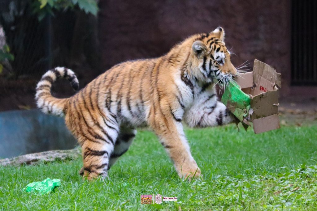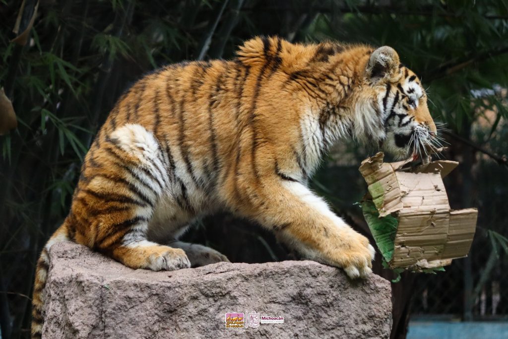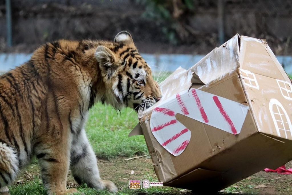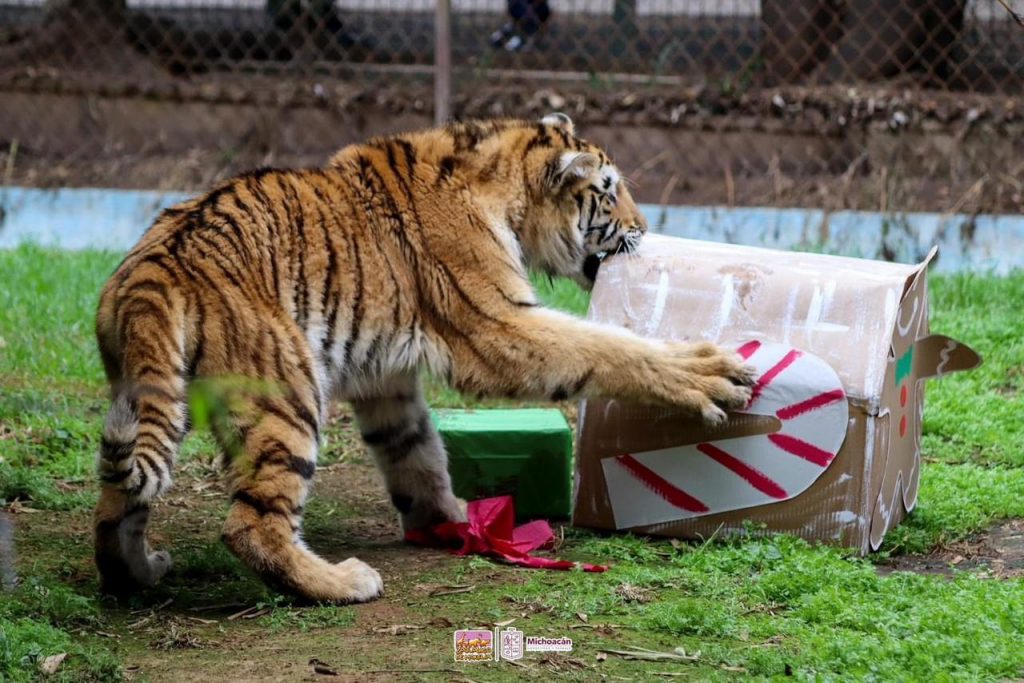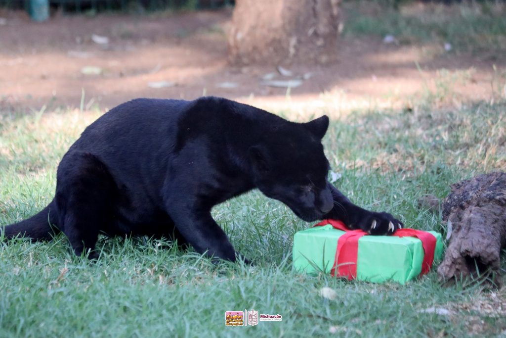 Redacción / La Voz de Michoacán Morelia, Michoacán. El gordito barrigón de traje rojo no pudo resistirse a la ternura de los pequeños y grandes felinos de nuestro Zoo de Morelia, y a bordo de su singular trineo les dejó decenas de obsequios. Los cachorros de tigre de bengala y jaguar fueron sorprendidos por elfos gigantes, disfrazados de guarda animales, con pequeños detalles que disfrutaron parte del día en sus albergues. Aromatizadas con esencia de vainilla, los regalos llamaron la atención de estos grandes felinos que no dudaron en divertirse a lo grande con ellas. Mordieron, rasgaron y dieron enormes zarpazos hasta destruirlas por completo. El verlos jugar fue un espectáculo divertidísimo. Apostamos que desde el cielo, Santa no paraba de reír y de sorprenderse con las gracias y poses de estos pequeños que llenaron de carcajadas el Parque. Las cajas de regalo navideñas fueron elaboradas por el Área de Etología, con papel de china y pintura vegetal para no dañar a nuestros ejemplares y las perfumaron con esencia de vainilla para atraer a los cachorros, ya que los aromas dulces, ¡les encantan! El objetivo de nuestros elfos es que los felinos jueguen y se diviertan como si estuvieran en vida libre. Estos enriquecimientos no solo se realizan cuando viene Santa, se hacen durante todo el año, para ofrecerles estímulos regulares para que los animales conserven su capacidad de adaptarse a los cambios del entorno sin estrés, como les sucedería en plena naturaleza. Esperamos con ansias el Día de Reyes para ver con qué nos sorprenderán Melchor, Gaspar y Baltazar…