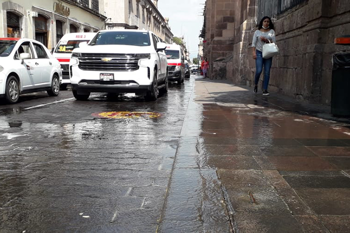 Redacción / La Voz de Michoacán Morelia, Michoacán. Sin que las autoridades municipales hagan algo, miles de litros de agua potable se están desperdiciando en una fuga en pleno Centro Histórico de la capital michoacana. A través de la lente de La Voz de Michoacán se pudo constatar como a un costado de la Catedral de Morelia hay una fuga muy grande de agua, misma que ya lleva, a decir de comerciantes, varias horas desperdiciándose y ningún trabajador del OOAPAS se ha presentado para solucionarla. No es posible que en ciudades como Monterrey estén sufriendo por la escasez del agua y aquí nuestras autoridades dejen tirar el agua por varias horas”, declaró un automovilista molesto. En Michoacán hay por lo menos 400 colonias que está sufriendo por la falta de líquido o por la reducción de presión por fallas.