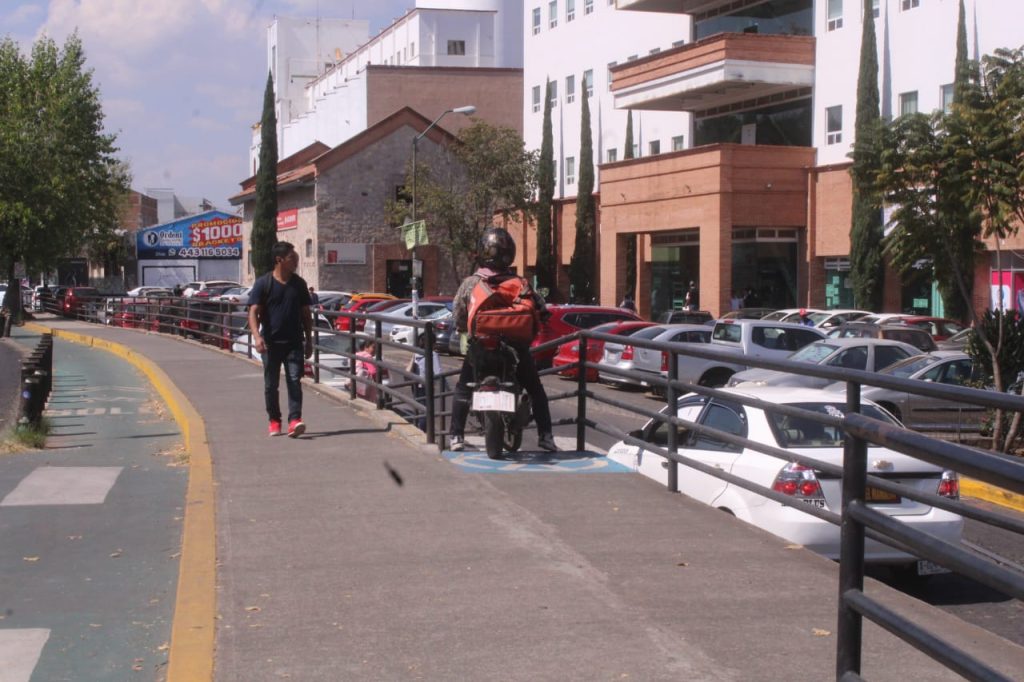 Motociclista pasando por la rampa para personas con discapacidad frente al Registro Civil. Todo por no ir unos metros más adelante a retornar para integrarse a la lateral de la Avenida Nocupétaro. Foto de Víctor Ramírez..