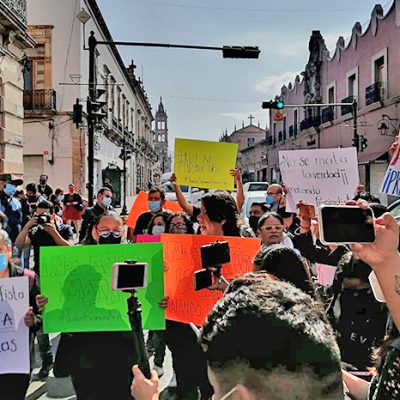 Con consignas como “Ni con balas ni metrallas, la prensa no se calla”, “Nos están matando” y “Urge periodismo libre y seguro”, decenas de periodistas partieron de la Calzada Fray Antonio de San Miguel, rumbo al primer cuadro de la ciudad, para detenerse en el Congreso del Estado.