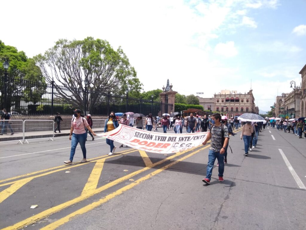 Juan Bustos/ La Voz de Michoacán Morelia, Michoacán. De nueva cuenta, egresados normalistas de la generación 2019 se movilizan desde la salida a Pátzcuaro hacia el centro histórico de Morelia en el reclamo estabilidad laboral mediante la asignación de plazas automáticas. Foto: Sam Herrera Jr. Desde hace varios meses los jóvenes han permanecido movilizados bajo esta demanda, ya que el compromiso de los gobiernos estatal y federal era que a principios de este año serían contratados y se entregarían las plazas base para el inicio de este ciclo escolar. Foto: Sam Herrera Jr. Sin embargo, el compromiso no se ha cumplido y hoy son mil 400 egresados, tanto de la generación 2019 como de la 2020, que reclaman una plaza base; asimismo alrededor de 350 de estos egresados que sí lograron un contrato temporal a inicios de de este 2020, reclaman el pago de quincenas pendientes incluso el adeudo llega seis meses sin pago.