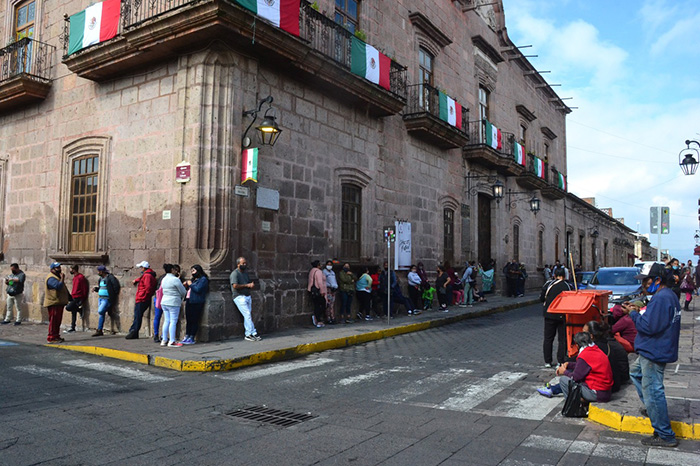 Héctor Jiménez / La Voz de Michoacán Morelia, Michoacán. Un grupo de más de cien comerciantes pertenecientes a la Unión Mártires de Uruapan, que laboran en la colonia El Realito, tomaron el Palacio Municipal de Morelia por la mañana de este lunes, exigiendo una solución al problema de invasión de calles en la que no está permitido el comercio y que, según señalaron, inició hace unos cinco años, pero se ha agravado en últimas fechas hasta llevar a confrontaciones en la zona. “La Dirección de Mercados y la Secretaría de Servicios Públicos no nos han dado solución a un problema de hace varios años y que se ha venido haciendo muy delicado hasta llegar a las confrontaciones con otro grupo de comerciantes ahí en la colonia El Realito, hay una invasión de grupos de personas que se quieren instalar en una vialidad que se llama Lanceros de la Libertad ahí en esa misma colonia”, explicó Ascensión Ortiz Paz, quien se identificó como secretario general de la unión. De acuerdo con la versión del líder de comerciantes, su unión suma a unos 400 vendedores que cuentan con permisos o tolerancias para laborar sobre las calles Ejercito del Centro y Jesús Ocampo, pero otro grupo de 50 personas ajenas a su organización han buscado ocupar algunas vialidades en las que no está permitido el comercio, lo cual ha llevado a conflictos en la colonia El Realito. Foto, Jaime Lagunas. “Son comerciantes ajenos a la nuestra, que son libres, que son liderados por una persona que está en una calle que no está registrada. Nos ha confrontado desde hace unos cinco años. Son aproximadamente 50, están instalados en una calle que está en conflicto, pero la autoridad no ha tomado cartas en el asunto, seguimos con el problema, esa calle no está autorizada para el comercio y ese problema nos ha generado que se amplíen y se extiendan”. “Esa calle es la que está haciendo todo el problema. La calle en conflicto es Rafael Urbina Mora y de ahí se deriva todo el problema, toda la invasión y no se respetan los límites. La única que tenemos contemplada y autorizada es la calle Ejercito del Centro con una tolerancia con la calle Jesús Ocampo”, ahondó Ortiz Paz. Los manifestantes ocuparon los dos accesos del edificio que permanecía con las puertas cerradas, en tanto que los trabajadores municipales que laboran en esta sede permanecían esperando en las aceras cercanas. El líder de la unión afirmó que hasta la fecha se han enviado diversos oficios y solicitudes a diversas áreas del Ayuntamiento de Morelia sin que se obtenga una solución al problema, por lo cual se optó por emprender la manifestación pacífica, en espera de ser atendidos por el presidente municipal, Raúl Morón Orozco, o el secretario del ayuntamiento, Humberto Arroniz Reyes. “La toma que venimos a hacer es pacífica, no estamos bloqueando vialidades. Si no nos dan solución, creo que yo para la próxima vez vamos a tomar medidas más fuertes, pero esperamos que no, esperemos que las autoridades nos den una solución y se acabe ese problema. No nos gusta hacer este tipo de movilizaciones, pero no nos deja de otra la autoridad más que hacer este tipo de acciones”. Autoridades mediarán en conflicto Los manifestantes fueron recibidos por autoridades municipales y la toma del edificio se retiró aproximadamente al mediodía. El Ayuntamiento de Morelia informó que los manifestantes fueron recibidos por el secretario Arroniz Reyes y se acordó que la Dirección de Mercados cumpla como mediador en el conflicto por espacios del tianguis tolerado. “El secretario del Ayuntamiento, Humberto Arróniz Reyes, escuchó esta mañana las demandas de dicha organización, a través de su líder, J. Ascensión Ortiz Paz, quién planteó un conflicto con la ciudadana María Isabel Contreras García, por la asignación y ocupación de espacios no autorizados en dicho tianguis, problema que inició en el 2014 y que en recientes fechas se ha incrementado”. “Por medio de la Dirección de Mercados, el Ayuntamiento de Morelia, fungirá como una instancia mediadora entre ambas partes, para buscar la mejor solución, siempre en respeto de los derechos de los comerciantes, así como de los vecinos de las colonias Mártires de Uruapan y El Realito”, informó el Gobierno Municipal de Morelia.
