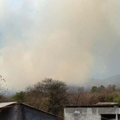 Durante tres horas un helicóptero de la SSP realizó 17 descargas de agua, pero debido a las condiciones climatológicas continuarán con los trabajos de combate por tierra.