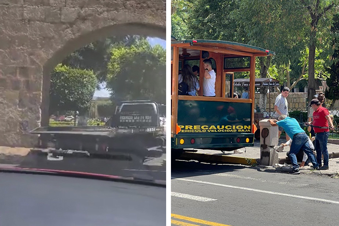 Redacción / La Voz de Michoacán Morelia, Michoacán. Luego que el chofer de una combi chocó contra una columna del Portal Aldama, en el centro de Morelia, en días pasados se reportó el daño del Acueducto y de un pilastrón de la Plaza Morelos por vehículos automotores que, tras dañar las estructuras, se retiraron del sitio. En el caso del Acueducto, al parecer fue una grúa la que causó daños al monumento histórico declarado como Patrimonio de la Humanidad. En el otro incidente, uno de los pilastrones que se encuentran alrededor de la Plaza Morelos fue derribado por otro automotor. En una imagen que circula en redes sociales se ve a un grupo de personas intentar “acomodar” la columna, colocando pedazos de la piedra caída; al lado se observa un vehículo turístico, sin embargo, se desconoce si éste fue el que derribó la estructura. En ambos casos, los conductores fueron ubicados y notificados por agentes de la Policía de Morelia y hoy se presentaron ante el juez cívico para reparar los daños de su acción, confirmó el comisionado de Seguridad de la capital, Alejandro González Cussi. “Bien por la Policía Morelia y los jueces cívicos… Así se refrenda en los hechos que el modelo funciona abatiendo la impunidad y consolidando la legalidad de nuestra ciudad”, señaló el funcionario. En el caso del Portal Aldama, ubicado atrás de Catedral, el daño es mayor y fue necesario apuntalar la estructura para evitar un posible derrumbe. Hasta ahora no se ha informado sobre el responsable de este daño al patrimonio, sin embargo, se sabe que se trató de un chofer del transporte público.