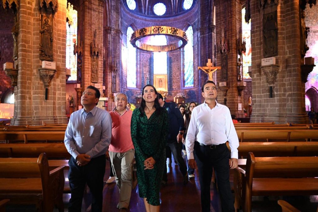Zamora, Michoacán; a 3 de marzo de 2026.– Con el objetivo de fortalecer la vocación turística del municipio y posicionar a la ciudad como un referente cultural a nivel nacional e internacional, el presidente municipal Carlos Soto presentó ante la secretaria de Turismo del Gobierno de México, Josefina Rodríguez Zamora, el proyecto de iluminación arquitectónica de última generación y video mapping del Santuario de Nuestra Señora de Guadalupe. Durante la gira de trabajo también estuvo presente el secretario de Turismo de Michoacán, Roberto Monroy García, con quien se acordó impulsar de manera conjunta la promoción turística de la ciudad. El alcalde destacó que, aunque se trata de un proyecto de alto costo, fue bien recibido por la Secretaría de Turismo Federal, al considerar que permitirá dar mayor proyección a una de las joyas arquitectónicas más emblemáticas de Zamora, aún poco conocida por gran parte del país. Subrayó que esta iniciativa forma parte de la estrategia del Buen Gobierno para detonar el turismo, generar mayor derrama económica y fortalecer la identidad histórica y cultural del municipio. Por su parte, el secretario municipal de Turismo, Cuauhtémoc Ventura Orozco, explicó que el proyecto contempla la iluminación integral del Santuario Guadalupano y de la calle Cázares, en el tramo de Hidalgo a 5 de Mayo, así como la instalación de un sistema de video mapping. Detalló que la inversión superará los 30 millones de pesos, al incluir 278 reflectores, 42 adicionales a nivel banqueta, la unificación de fachadas y equipo especializado de proyección y audio; además, adelantó que probablemente será licitado a nivel nacional.