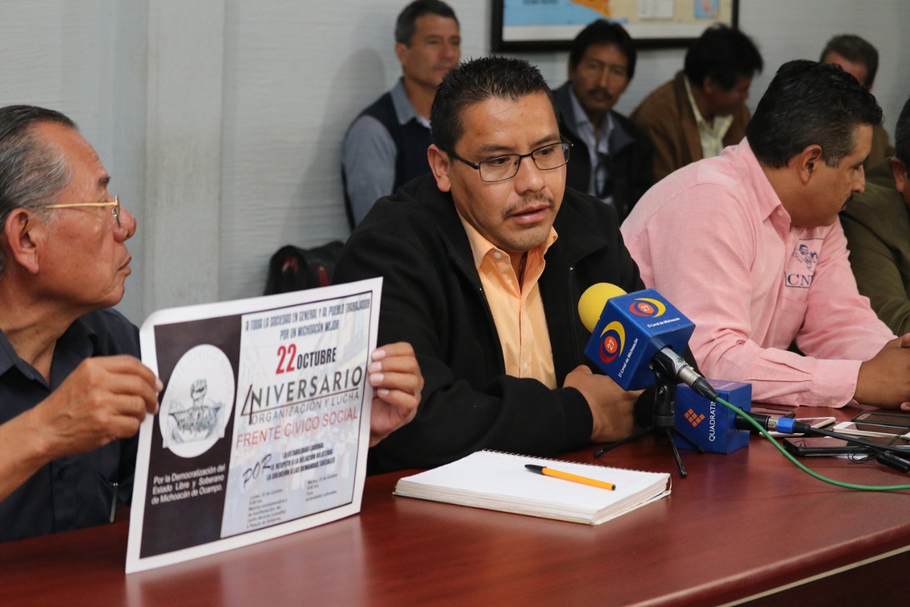 Redacción/ La Voz de Michoacán Morelia, Michoacán. El Frente Cívico Social protestará el próximo lunes 22 de octubre. https://youtu.be/sPJRIuFL7mo A través de un comunicado, el Frente Cívico anunció que marchará el próximo lunes para que se cumplan las demandas, como estabilidad laboral y pagos del Telebachillerato. La marcha partirá de las 10:00 am de Plaza Morelos hacia el Centro Histórico. Son 18 organizaciones las que participarán.