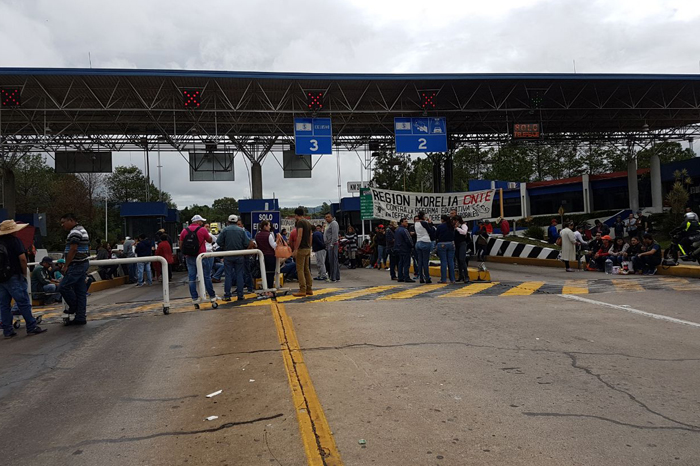 Juan Bustos/La Voz de Michoacán Morelia, Michoacán. En protesta por la Reforma Educativa y en exigencia de adeudos pendientes, miembros de la sección XVIII de la Coordinadora Nacional de Trabajadores de la Educación (CNTE) inició este miércoles un paro de 48 horas en los 113 municipios de Michoacán. Es de mencionar que el magisterio “disidente”, liderado por Víctor Zavala Hurtado, permite el libre paso de automovilistas en las casetas de peaje de las autopistas Siglo XXI, de Occidente, Pátzcuaro-Cuitzeo y Zitácuaro-Toluca. Autoridades han señalado que los maestros podrían hacer un “puente” para reiniciar las clases hasta la próxima semana. La CNTE alista una “megamarcha” para el jueves desde los cuatro puntos cardinales de Morelia hacia el primer cuadro de la ciudad, donde realizarán un mitin.