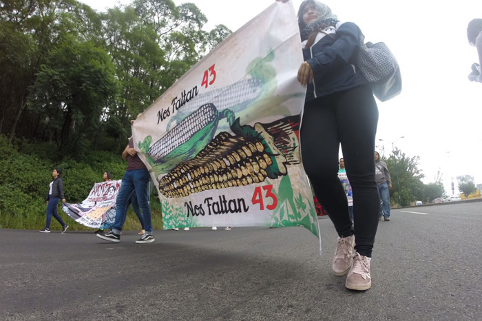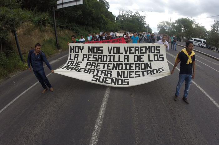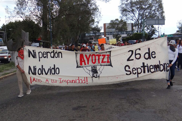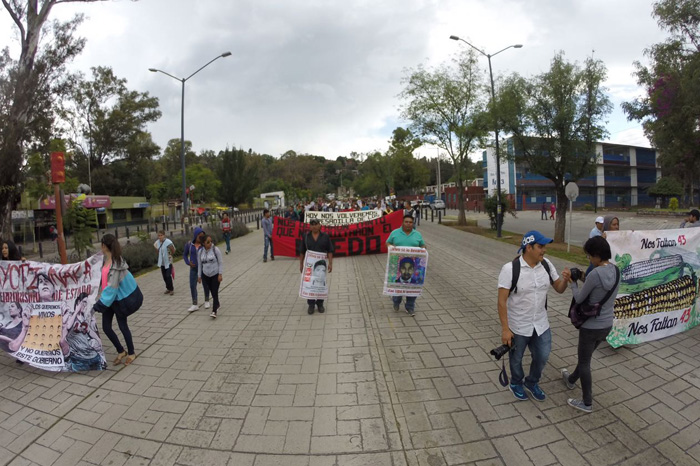 Personas en apoyo a los estudiantes de Ayotzinapa que exigen se esclarezca la desaparición de sus compañeros, partieron de Casa de Gobierno al Palacio de Gobierno, para pasar por Calzada Juárez.