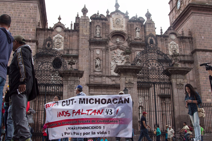 Morelia, Michoacán. Luego de una tarde de manifestaciones donde tres distintos contingentes arribaron al centro de Morelia para terminar su protesta frente a Palacio de Gobierno, ésta ha concluido.