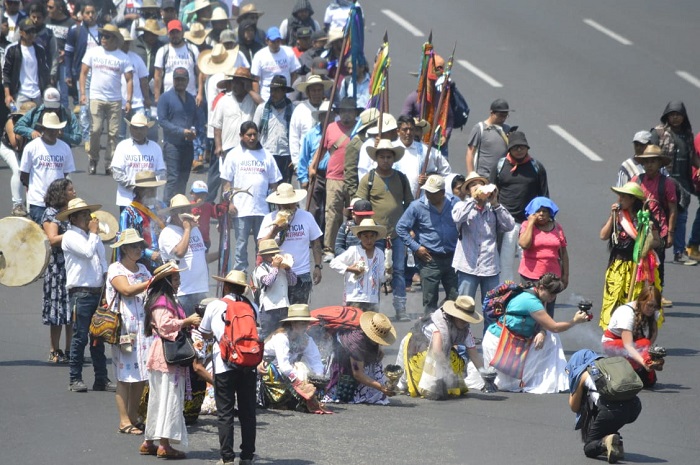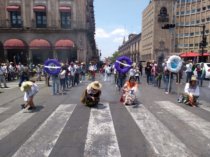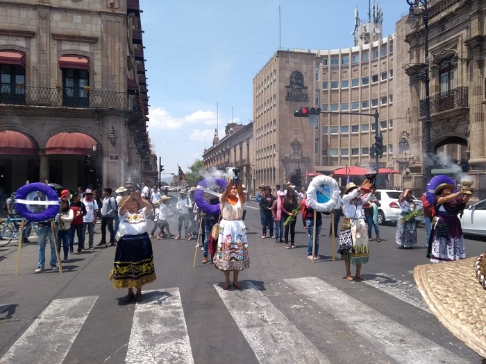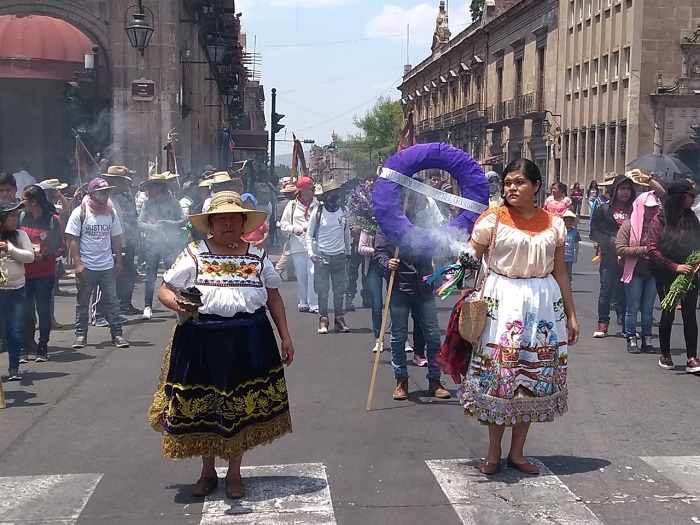 Morelia, Michoacán. A dos años de los enfrentamientos que dejaron 4 muertos en la comunidad de Arantepacua, comuneros de diferentes comunidades indígenas de Michoacán, se manifiestan en la ciudad de Morelia.