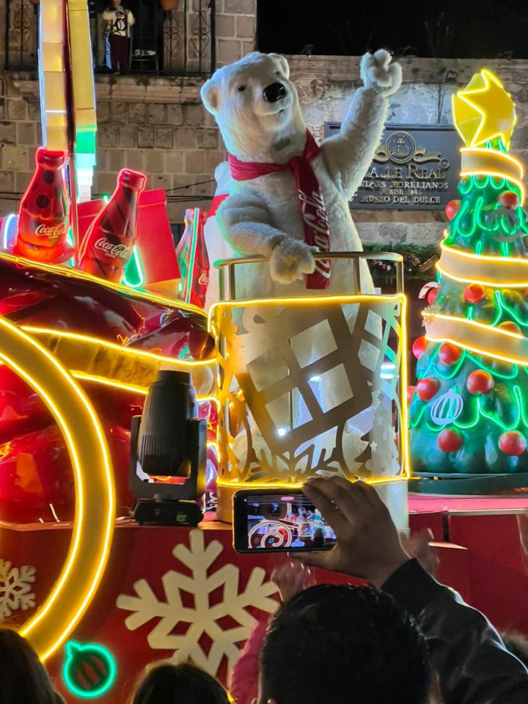 Redacción / La Voz de Michoacán Morelia, Michoacán; 7 de diciembre de 2025.- La Caravana Coca Cola, superó todas las expectativas de asistencia y se estima que más de 350 mil personas se dieron cita para presenciar el recorrido. Las avenidas Acueducto y Madero, desde el estadio Venustiano Carranza hasta el obelisco al General Lázaro Cárdenas, lucieron completamente llenas de morelianos y visitantes que llegaron de diferentes puntos del estado y entidades vecinas. El espectáculo comenzó en punto de las 7 pm con el banderazo de salida a cargo del alcalde, Alfonso Martínez Alcázar y directivos de la empresa. A lo largo del camino se colocaron vallas de seguridad para evitar posibles accidentes y que el público pudiera disfrutar del paso de la misma. El recorrido, tal y como estaba previsto, se prolongó por espacio de 3 horas y hubo 4 paradas en donde se hacían presentaciones artísticas: Jardín Morelos, Madero y Juan José de Lejarza, Madero frente a Catedral y Madero/ Calzada La Huerta. Desde temprana hora la gente se comenzó a instalar a lo largo del recorrido, particularmente en la zona centro. Horas antes del inicio miles de personas ya estaban colocadas sobre la antigua Calle Real en dirección a la avenida Acueducto. Dicho recorrido forma parte de la agenda de actividades navideñas que organiza el DIF Morelia que preside Paola Delgadillo Hernández, para celebrar en familia de forma espectacular las fiestas de fin de año.
